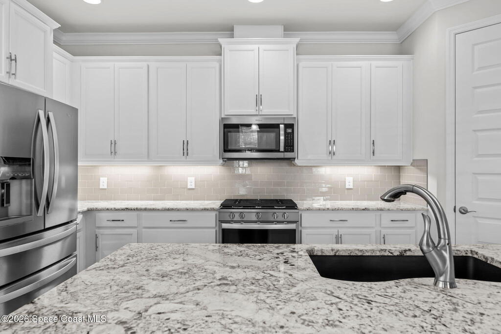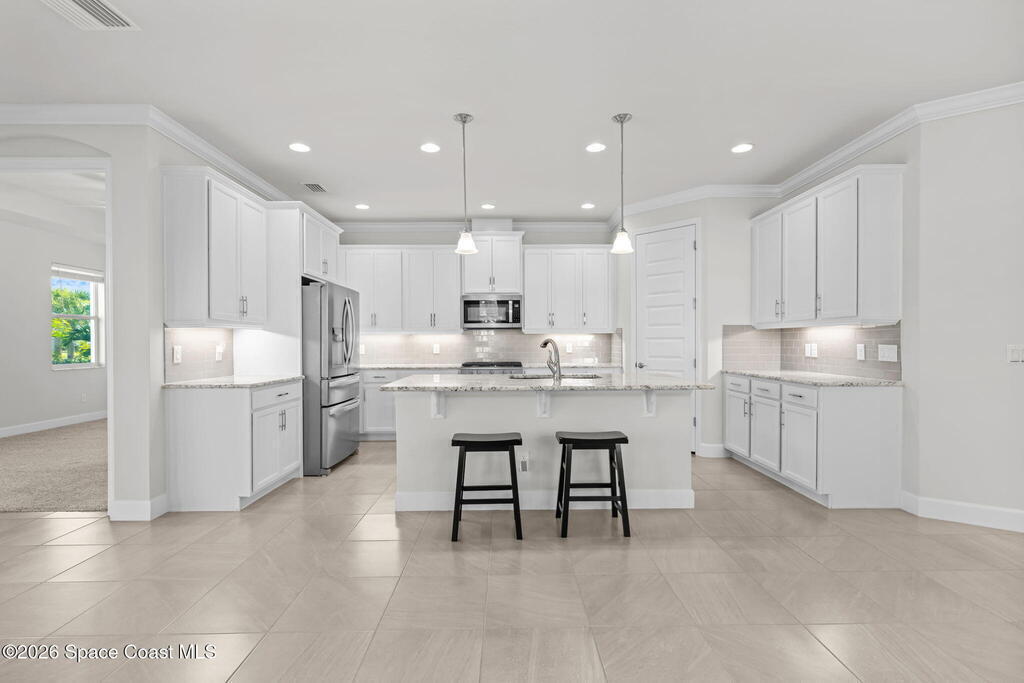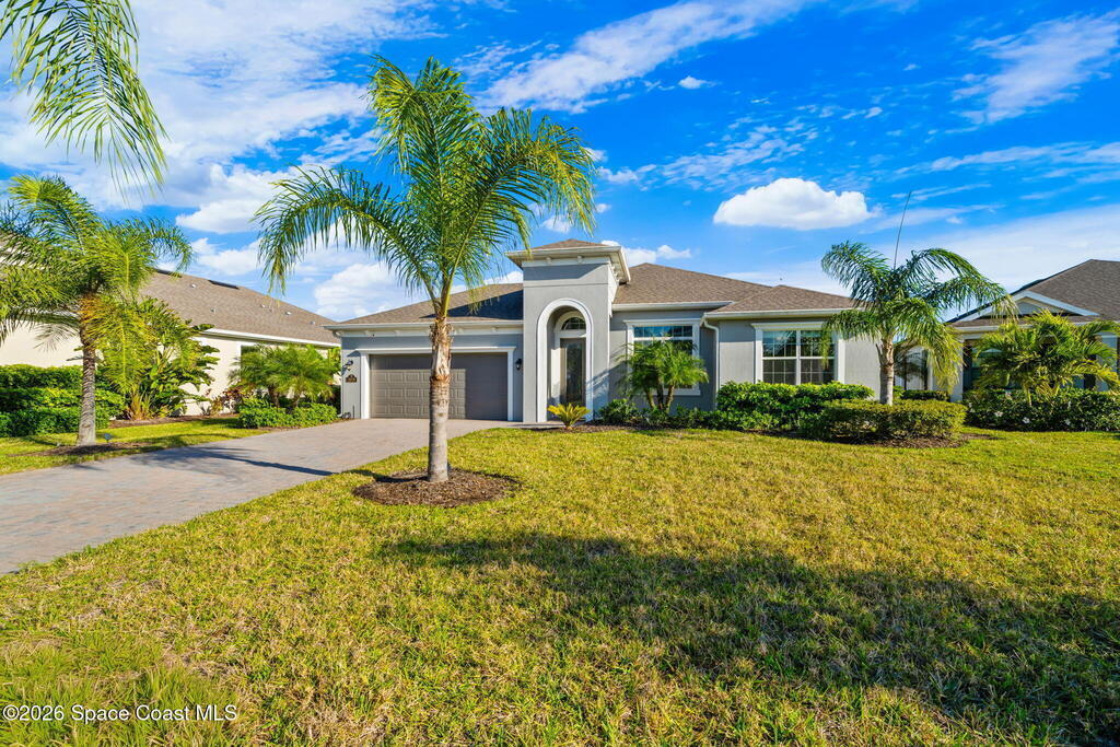 The Destin floor plan lives large with 3 bedrooms + office (or 4th bedroom) & 2 baths, perfectly balanced for both functionality and comfort...ideal for everyday work-from-home life and family living.Nestled in the desirable Trasona Cove section of Viera, this beautifully maintained home offers an open-flow layout and thoughtful design buyers crave, without the wait, the uncertainty, or the added cost of new construction.Outside, the oversized backyard is your canvas: pre-plumbed for summer kitchen, plenty of room to build a pool, create a backyard paradise, add an outdoor living area, & more.And let's talk value -- this home is priced aggressively and realistically, not just with the usual marketing talk. Step inside to soaring ceilings, tile floors, 8-foot doors, and an open layout that promotes effortless everyday living and entertaining. The chef-ready kitchen shines with white cabinetry, upgraded granite, stainless appliances, a center island, & a large walk-in pantry