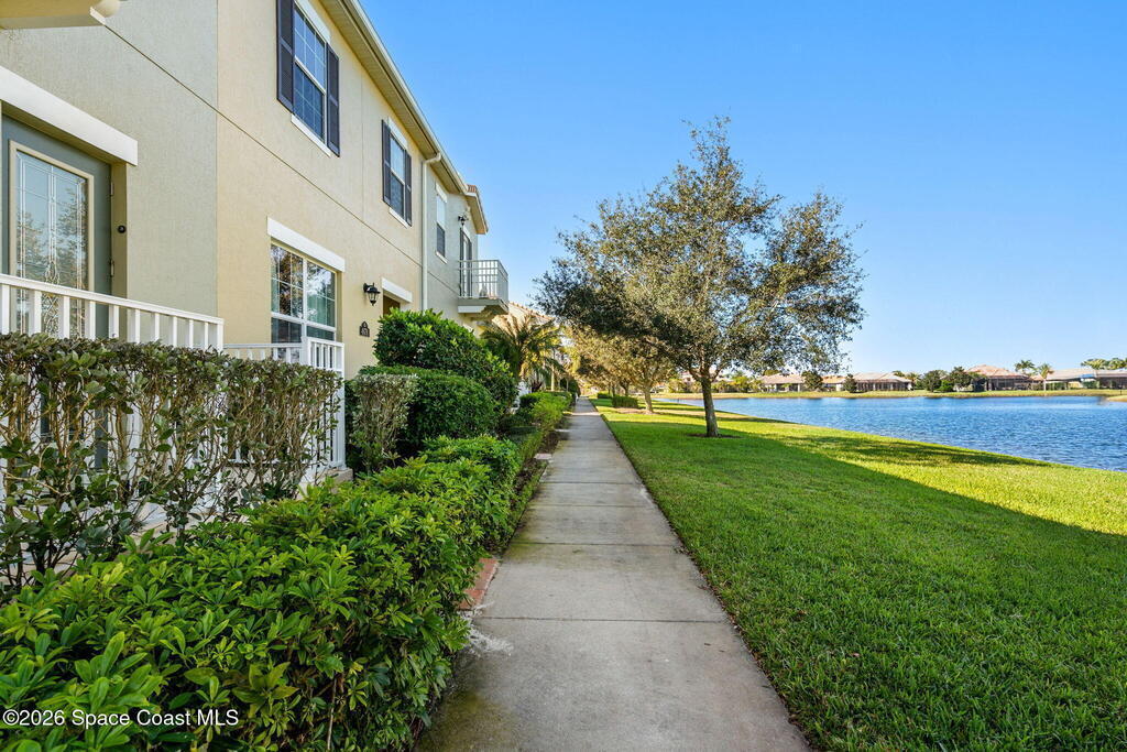 PRICE IMPROVED Premier Stadium Villas 3BR, 2.5BA townhome with pond views. Sellers' pride of ownership on display in every room. The masterpiece of the home is the light, bright, designer kitchen with upgraded KitchenAid appliances (gas stove, convection oven), quartz counters, marble backsplash, custom maple cabinets galore, breakfast bar, built in desk, butler pantry. The center of the home is the screened, private interior courtyard, bringing the outdoors into the open living area-perfect place to relax, gather, entertain; pets will love it too. Feel the breeze and gaze at the pond from the front porch. High ceilings make 1848 square feet of indoor living space feel even more generous. First-floor half bath renovated with quartz counter and vessel sink. Large two car garage with overhead attic for additional storage and epoxy floor covering. Beautiful details such as the wood-look plank flooring, high baseboards, crown moldings, glass front door, (Continued in More)