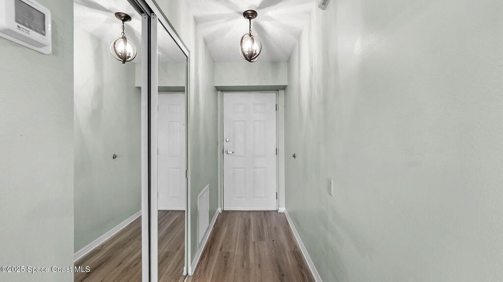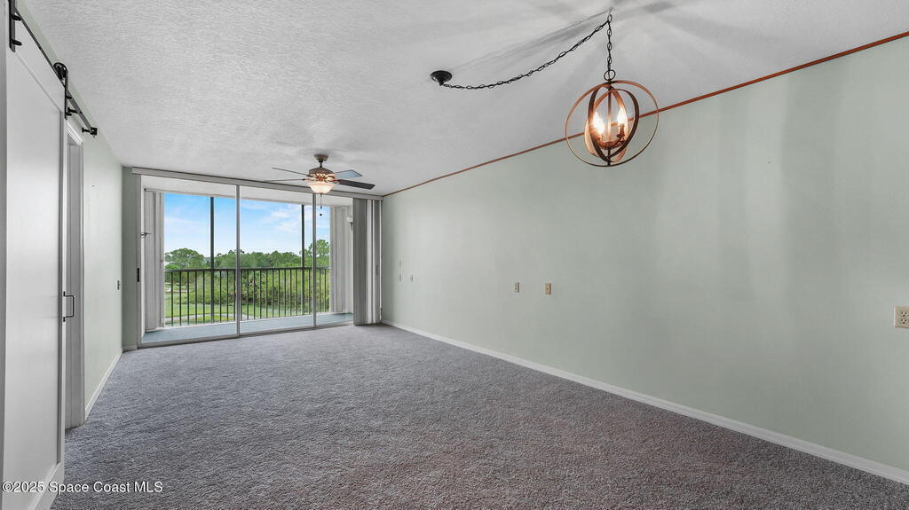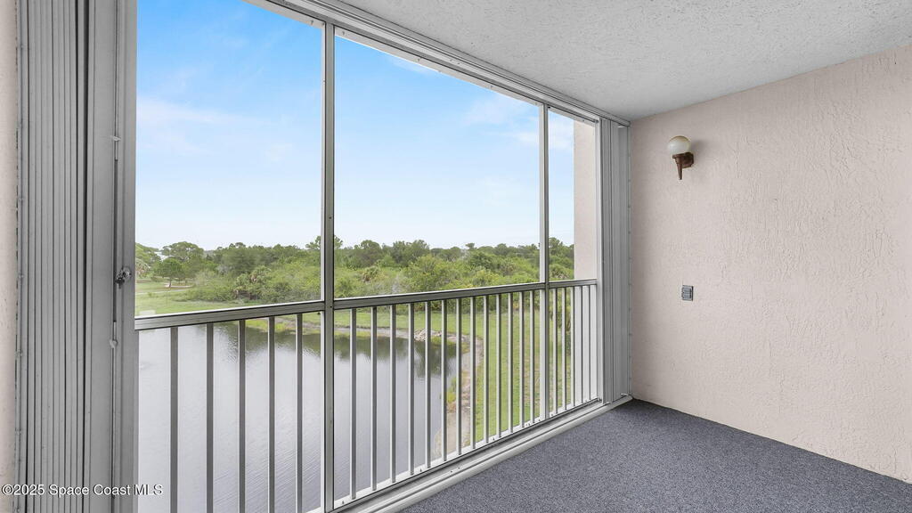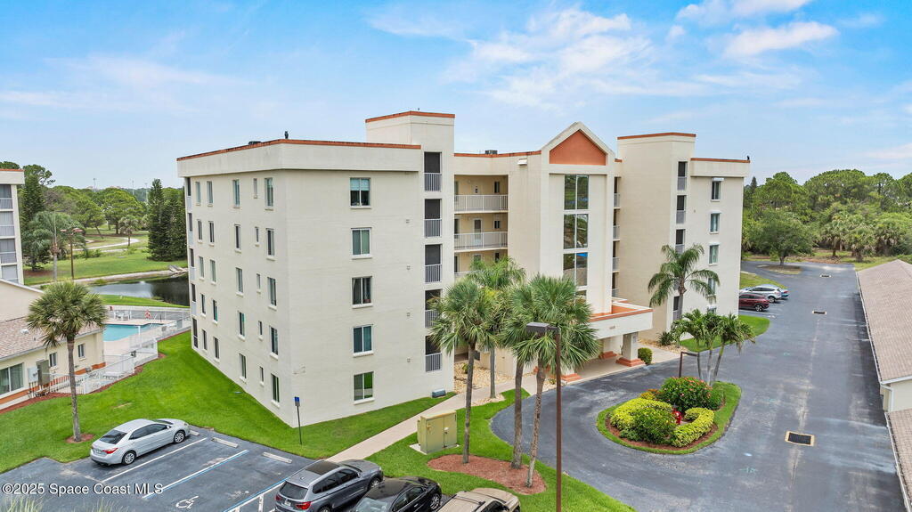 Quiet 4th-floor 2-bedroom, 2-bath condo with detached 1-car garage in the desirable 55+ Carmel Community. Bright unit features hurricane-impact windows and shutters, new flooring, quartz kitchen, stainless steel appliances, laundry hookups inside unit, nearby trash chute, and a screened balcony with peaceful pond views. Enjoy truly low-maintenance living with a most-inclusive HOA covering water, sewer, trash, cable, internet, Disney+, insurance, lawn care, pest control, and exterior maintenance. Community offers a clubhouse, pool, fitness center, library, billiards, and social activities. Milestone inspections complete and elevators updated. Convenient to Viera shopping, dining, medical facilities, trails, beaches, I-95, and less than an hour to Orlando.