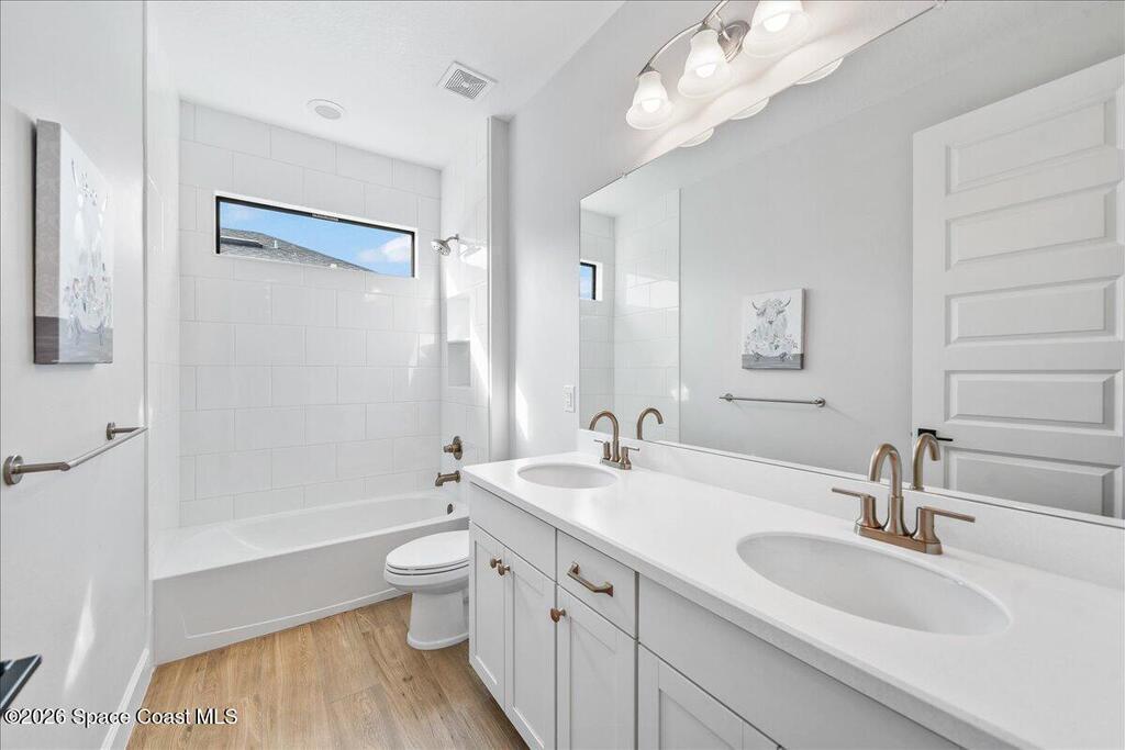 Welcome home to Viera! This 4 bedroom home has an additional designated office and 3.5 bathrooms. This home has about every upgrade you can think of from plantation shutters, rain shower, pot filler, quartz countertops, and level 6 flooring, you will not want to miss out on this gem! Both the master bedroom and office are located on the first floor for added convenience and privacy. Step outside and you'll find a screened in porch, a great spot to relax - plus easy access to neighborhood trails and parks nearby. The back has a HUGE open area for added running and play. Viera lifestyle is hard to beat with access to Addison Village Club, two swimming pools, tennis courts, pickleball, restaurants and shopping, you may never want to leave this one mile radius! This home is also zoned for all Viera schools with Viera Elementary just a short golf cart ride away! Welcome to the perfect combination of community, convenience, and fun!