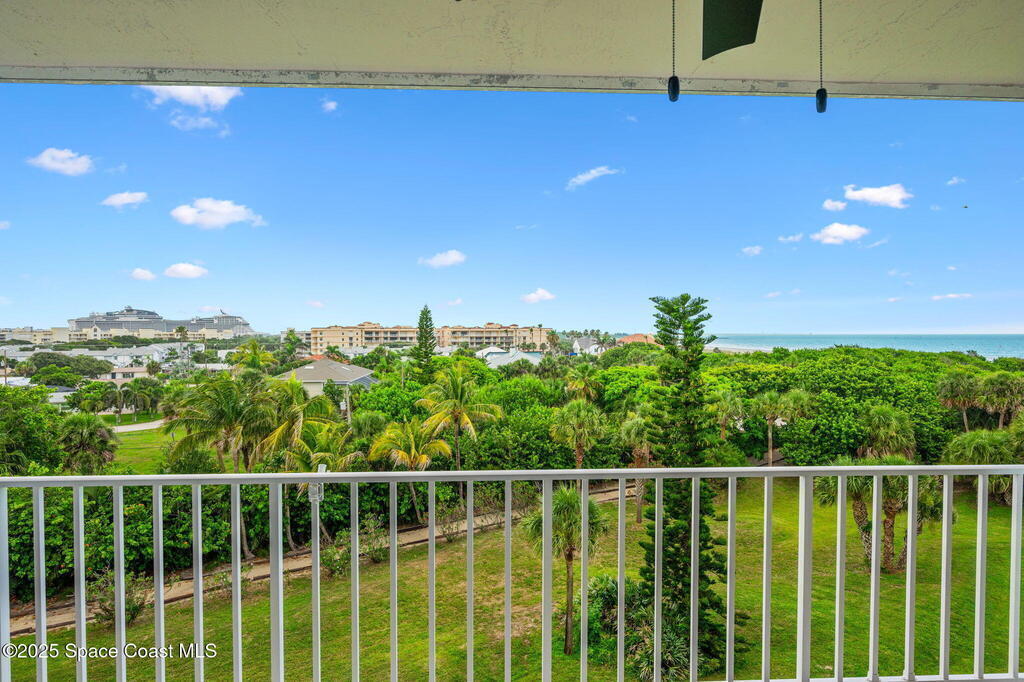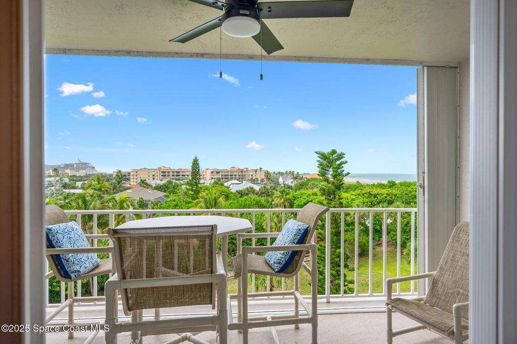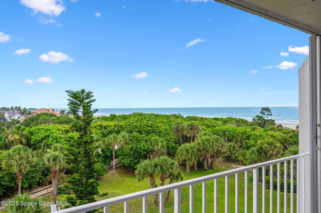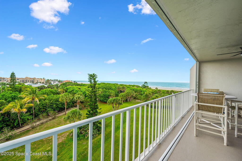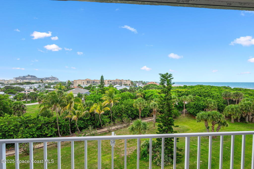 Experience COASTAL LIVING at its finest in this top-floor OCEANVIEW PENTHOUSE at the desirable Ocean Oaks complex in CAPE CANAVERAL. This beautifully appointed 2-bedroom, 2-bath condo also features a versatile flex room with sliding barn doors, perfect for a home office or guest space.Enjoy front-row seats to breathtaking ROCKET LAUNCHES, serene views of lush green space, and the tranquil sound of ocean waves while you watch the tide roll in. The spacious living area opens up to panoramic vistas, where you can watch cruise ships drift by and feel the fresh sea breeze. The updated kitchen boast granite countertops, ample cabinet space, a coffee station, and a large pantry. Stylish tile floors throughout add to the modern coastal charm. The primary suite is a true retreat, offering spectacular ocean views, his & hers closets, dual vanities, and a luxurious jetted tub--perfect for unwinding after a long day on the beach! Includes a 1 car under building oversized garage!