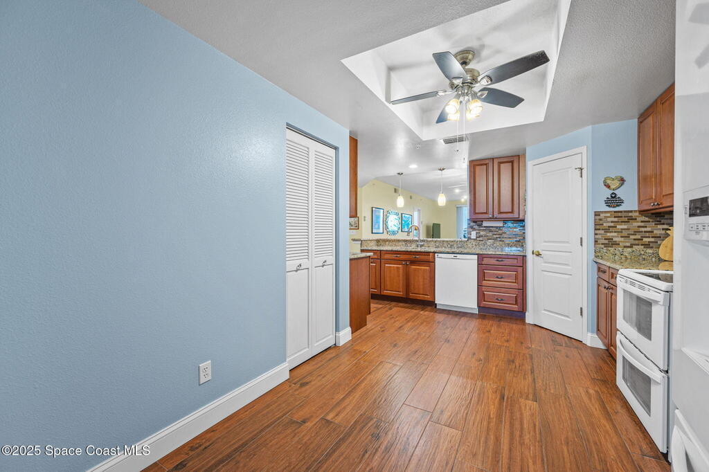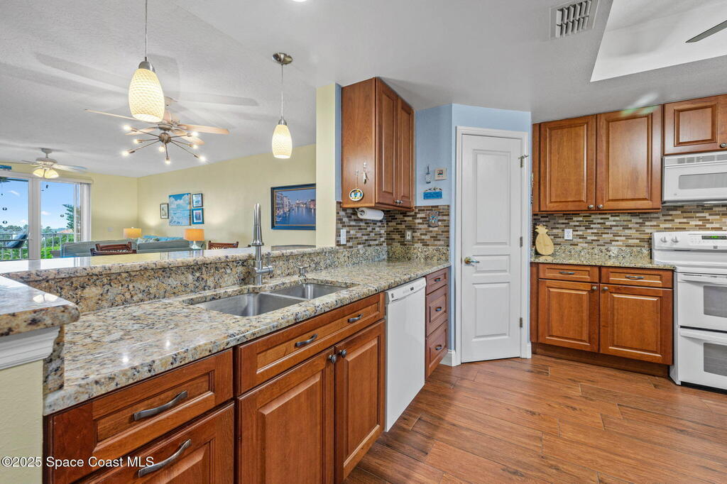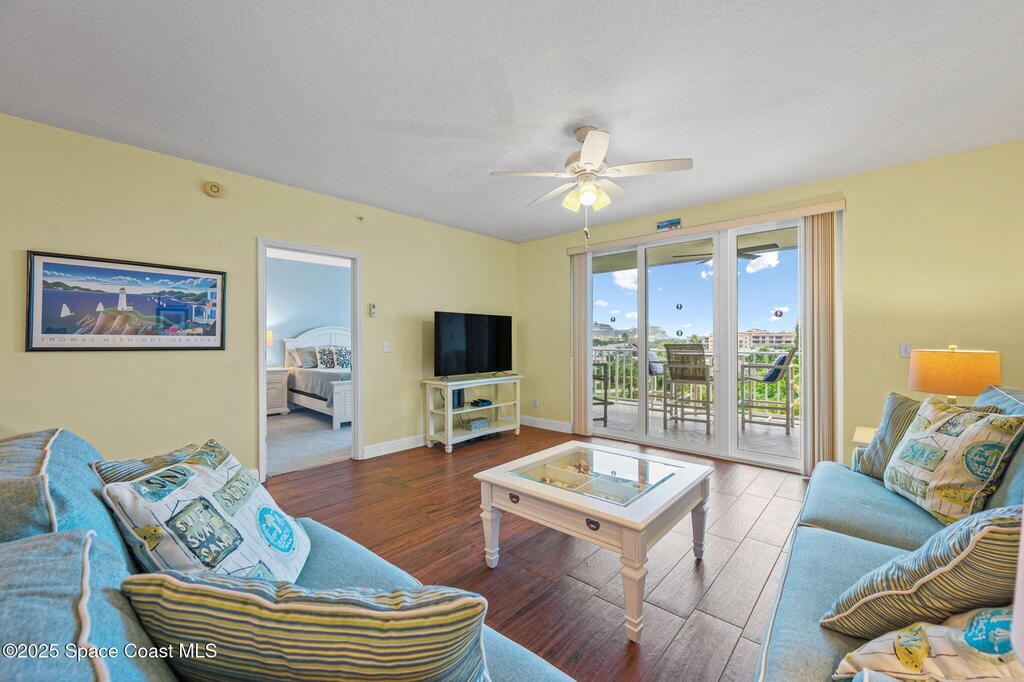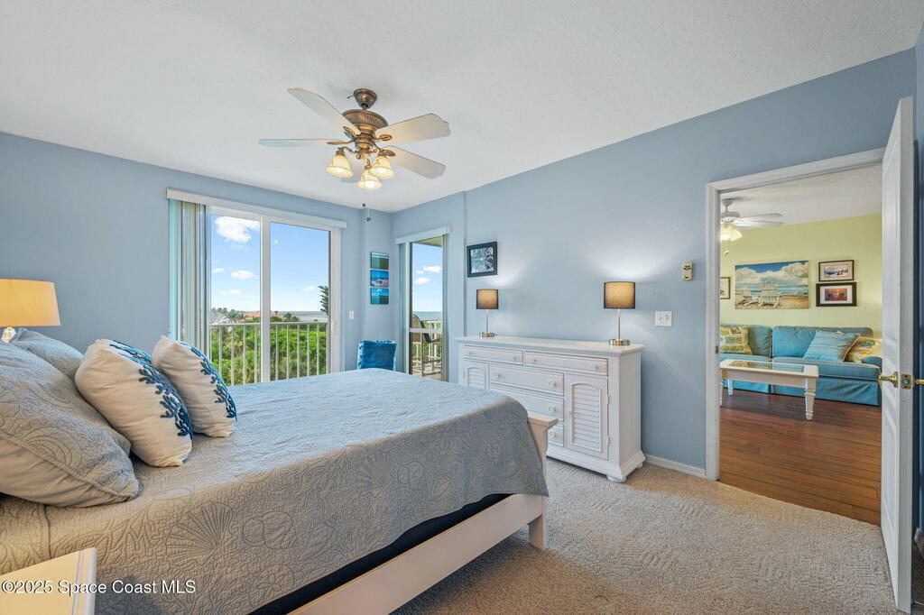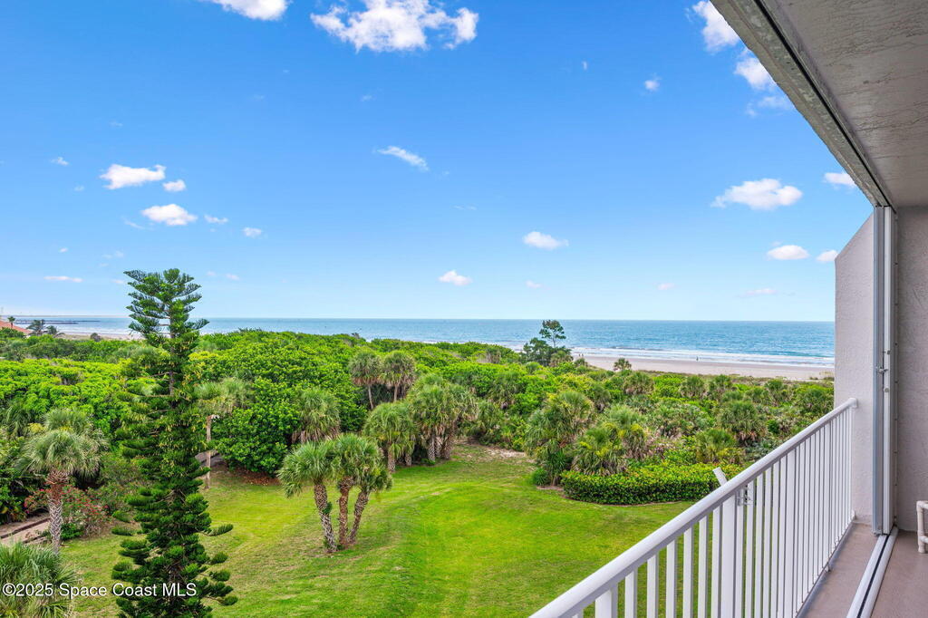 Experience COASTAL LIVING at its finest in this top-floor OCEANVIEW PENTHOUSE at the desirable Ocean Oaks complex in CAPE CANAVERAL. This beautifully appointed 2-bedroom, 2-bath condo also features a versatile flex room with sliding barn doors, perfect for a home office or guest space.Enjoy front-row seats to breathtaking ROCKET LAUNCHES, serene views of lush green space, and the tranquil sound of ocean waves while you watch the tide roll in. The spacious living area opens up to panoramic vistas, where you can watch cruise ships drift by and feel the fresh sea breeze. The updated kitchen boast granite countertops, ample cabinet space, a coffee station, and a large pantry. Stylish tile floors throughout add to the modern coastal charm. The primary suite is a true retreat, offering spectacular ocean views, his & hers closets, dual vanities, and a luxurious jetted tub--perfect for unwinding after a long day on the beach! Includes a 1 car under building oversized garage!