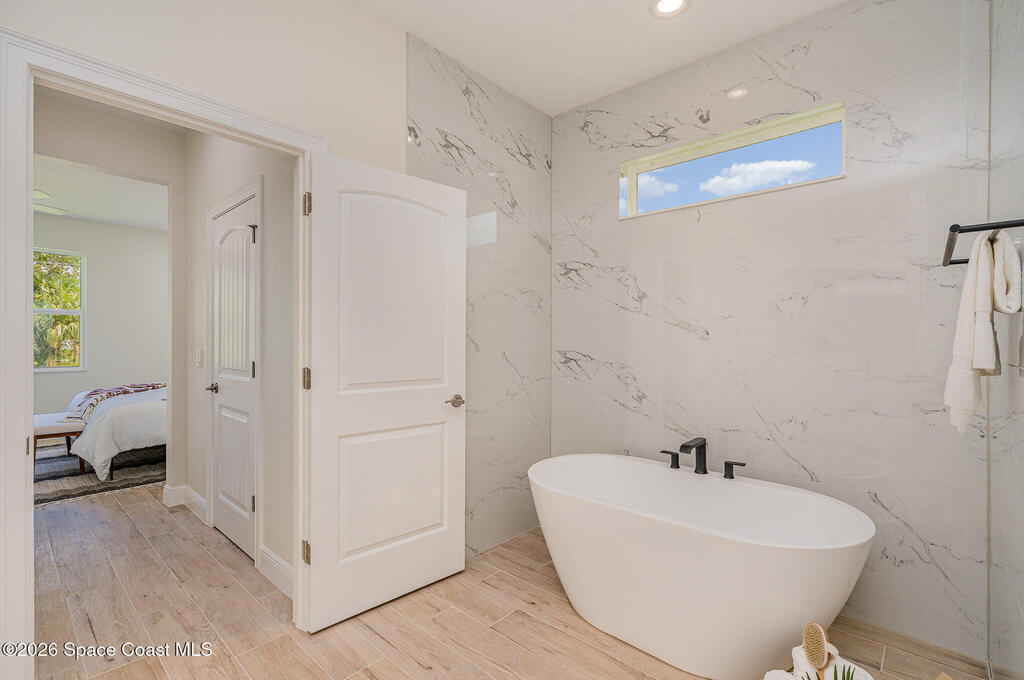 Every home has a story, but this one feels like it's been waiting just for you. Its striking stone facade and inviting entrance create an instant sense of welcome. Step inside and you're surrounded by light and space, with soaring 9.4-foot ceilings and elegant 8-foot doors setting the tone for modern living. At the heart of the home, the kitchen takes center stage a nine-foot quartz island ready for morning coffee, holiday meals, and late-night conversations. Porcelain tile flows seamlessly throughout, leading you to the owner's suite where a spa-inspired bath with a freestanding soaking tub and walk-in shower offers the perfect escape. Quality details are everywhere from the premium water treatment system with reverse osmosis to the epoxy-coated garage floor and freshly painted porches designed for enjoying Florida's warm days.