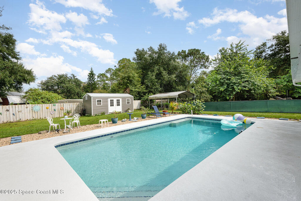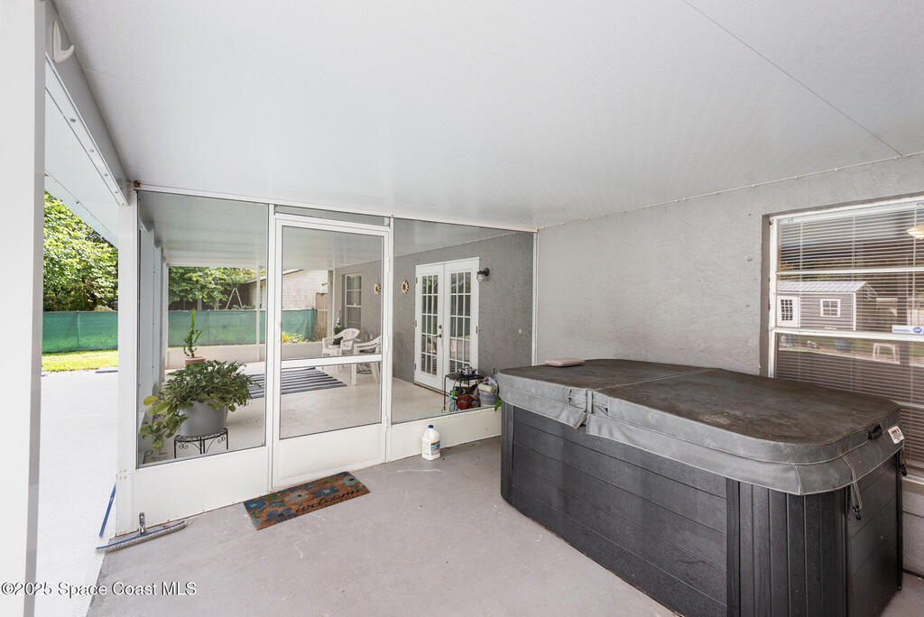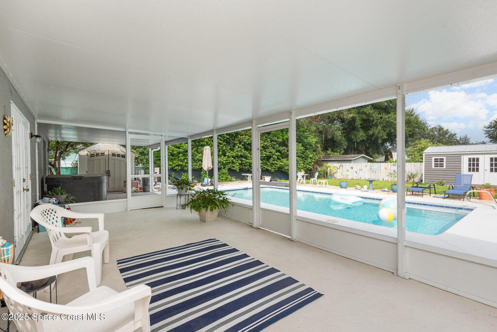 Fall in love with this cozy 2-bedroom, 2-bathroom home, filled with charm and character. Built in 1985 and offering 1,037 square feet of living space, this home features stainless steel appliances in the kitchen and a beautifully updated shower in the primary bathroom. Step outside to find a large screened back porch, perfect for entertaining friends and family. Cool off in the newer inviting saltwater pool or relax in the hot tub, or spend your weekends tinkering in the spacious workshop at the rear of the property. The home also includes hurricane shutters conveniently stored in the garage and home also features a brand new HVAC system.Whether you're planning ahead for your dream home or seeking a solid investment, this one checks all the boxes!