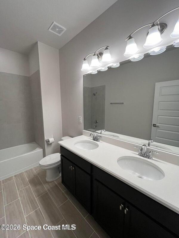 Beautiful waterfront home ready for you to move-in! This stunning residence offers top-of-the-line upgrades, including quartz countertops, wood-look tile flooring, stainless steel appliances, and recessed lighting throughout. The open floor plan is complemented by hurricane-impact windows and a modern kitchen featuring a spacious walk-in pantry. This like-new (one year) 4-bedroom, 2.5-bath home is ideally located in the heart of Viera, close to premier shopping and dining, and just minutes from I-95.