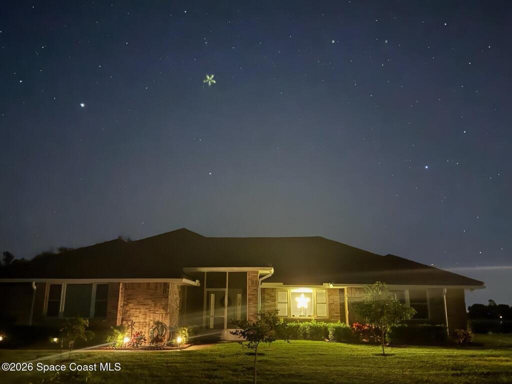 Welcome Home! to this beautifully renovated 4-bedroom, 2-bath lakefront retreat on a half-acre lot in a quiet, hidden-gem neighborhood of large lots & great neighbors. East-facing lake views deliver stunning sunrises, enjoyed from the big picture window & screened rear porch, & screened front porch for amazing sunsets! The open floorplan features a cozy fireplace & durable LVP flooring throughout. Completely renovated top-to-bottom in 2025 with high-quality materials - not a flip - the seller's unexpected change of plans is your gain. Brick-over-block construction, impact glass windows, & a steel roof (50-year lifespan) offer lasting peace of mind. The whole house water filter even keeps you healthy! Enjoy your own private orchard with grapefruit, orange, lemon, lime, and avocado trees. Check out the popup outlets on the kitchen counters! Some furniture is negotiable. Low HOA at just $29/month completes this exceptional opportunity. You've been invited, so what are you waiting for?