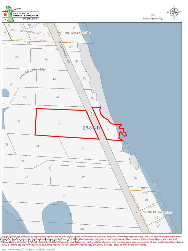 An exceptional opportunity to own 2.66 acres of prime Banana River waterfront land along S. Tropical Trail in Brevard County, Florida. Zoned single-family residential, this expansive parcel offers the perfect canvas to design and build a luxury custom estate surrounded by natural beauty and tranquil water views. The generous acreage provides privacy, flexibility in site planning, and the rare ability to create a truly one-of-a-kind waterfront retreat.Enjoy peaceful surroundings while remaining conveniently close to area shopping, dining, and the Space Coast's renowned beaches and attractions. Whether envisioned as a private residence or a legacy property, this waterfront homesite delivers an unparalleled combination of space, serenity, and coastal living.