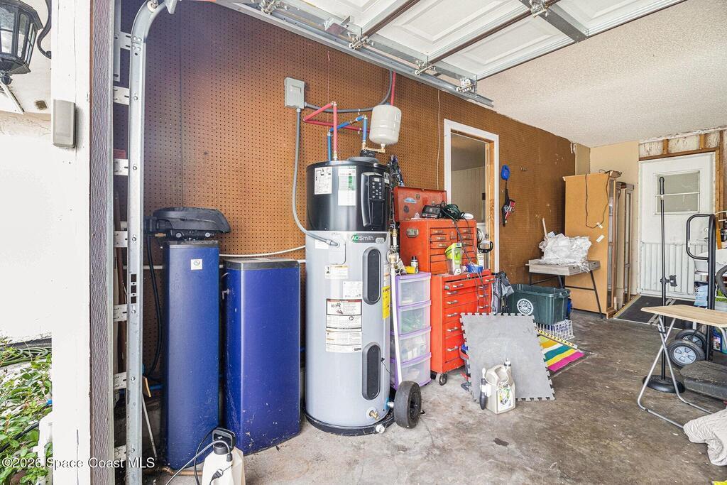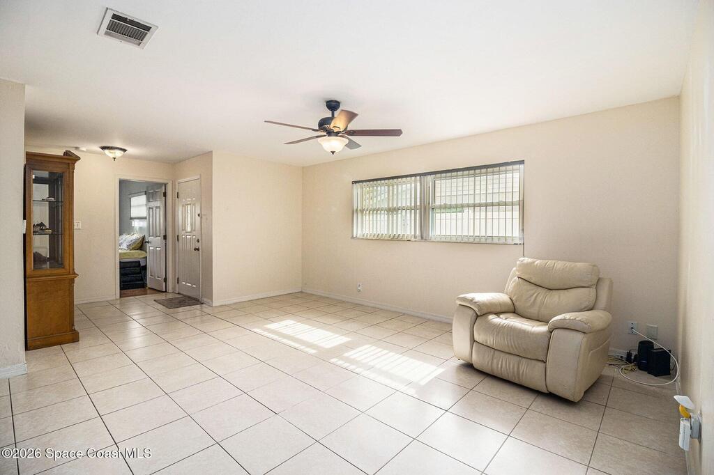 Nestled in the heart of Rockledge, this home offers the perfect blend of farm living but convenient. Featuring a fully fenced backyard with lush fruit trees and tropical plants, ideal for gardening, relaxing, or simply enjoying nature. Large screened and covered lanai creates the perfect setting for morning coffee, outdoor dining, peaceful butterfly watching or a roaring fire in the pit. The kitchen shines with stainless steel appliances, Corian countertops, and a vibrant tropical backsplash, while tile and laminate flooring flow throughout. Major updates provide peace of mind, including a roof (2019), windows (2020), garage door and HVAC (2021), hot water heater (2025), and a water softener installed in (2023). A new sprinkler system keeps the landscape thriving. In addition to bedrooms, a versatile flex room offers endless possibilities as a home office, craft room, gaming or theater space, or even mother-in-law quarters. Established but no HOA