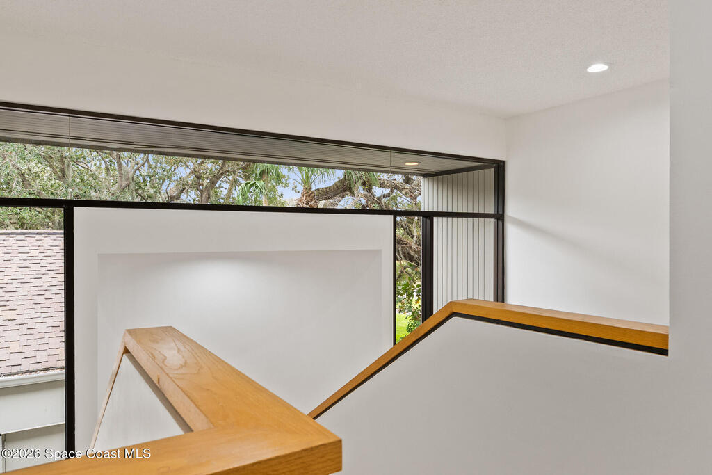 Spacious end-unit townhome featuring solid concrete block construction and modern European architecture, surrounded by serene tropical gardens with abundant natural light and generous outdoor spaces. Open living and dining areas are highlighted by a cozy wood-burning fireplace, while a streamlined kitchen opens to a private courtyard--ideal for entertaining.The upstairs primary suite enjoys tranquil lake views, along with a guest bedroom featuring an en-suite bath. Downstairs, a large guest suite with en-suite bath opens to a screened-in lanai overlooking the lake, offering privacy & picturesque views. The entire downstairs plus staircase have been freshly painted, and the residence may convey turn-key for effortless move-in.Additional features include multiple lanais, an oversized two-car garage and exclusive access to a heated community pool (currently under construction) Located in Aquarina Beach & Country Club: Golf, tennis, fitness, private river & ocean access and beach club