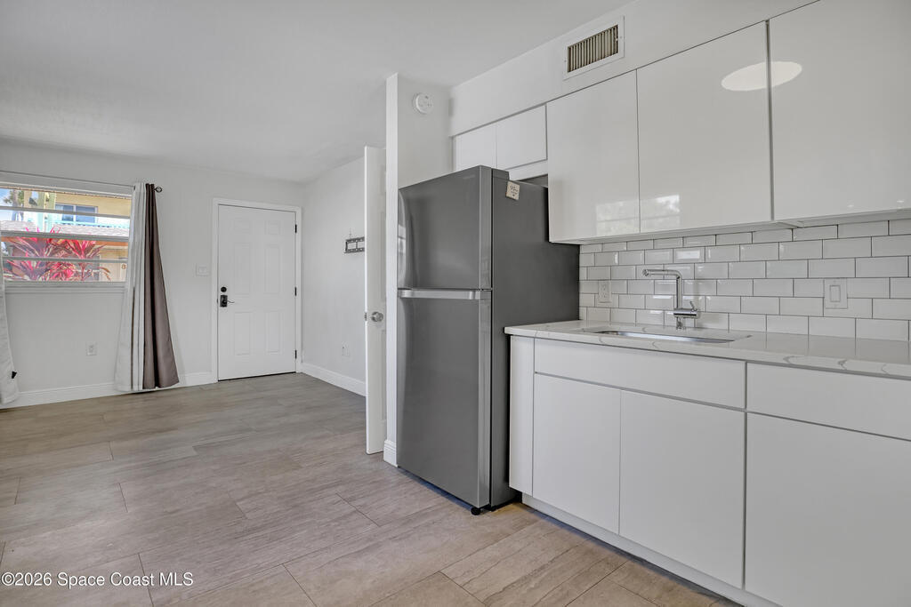 Welcome to paradise at this stunningly remodeled end-unit in the heart of Cape Canaveral! This beautifully updated 1-bed 1-bath gem offers the perfect blend of coastal charm, and unbeatable location ideal as a primary residence, vacation getaway, lucrative investment, or a beachside rental. Step inside to a bright open floor plan with fresh, contemporary finishes throughout that create a welcoming retreat after a day at the beach or watching a rocket soar overhead. The spacious private back patio with pavers provides an outdoor oasis perfect for morning coffee, evening drinks, or al fresco dining while enjoying the Ocean breeze. Extra storage space adds convenience for beach gear, bikes, or seasonal items, and you'll love the two parking spots right out your door. Location is everything, just two blocks to the beach crosswalk, 5 minutes from the cruise ships of Port Canaveral, 40 minutes to OIA & theme parks, walk to dining and shopping. A smart investment in the booming Space Coast!
