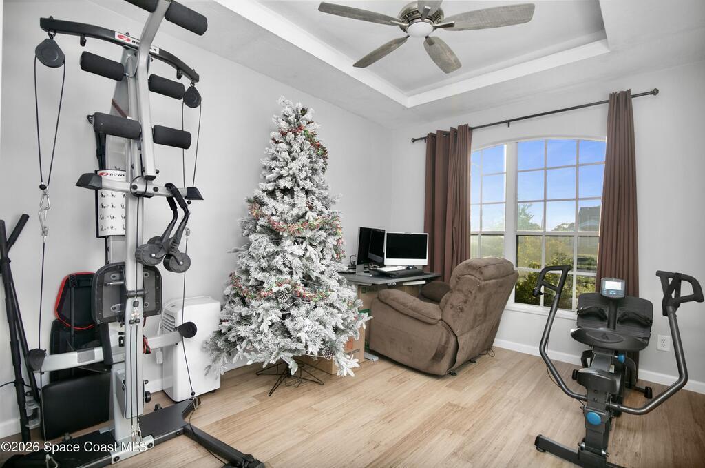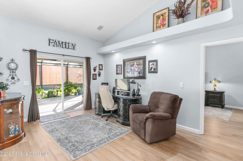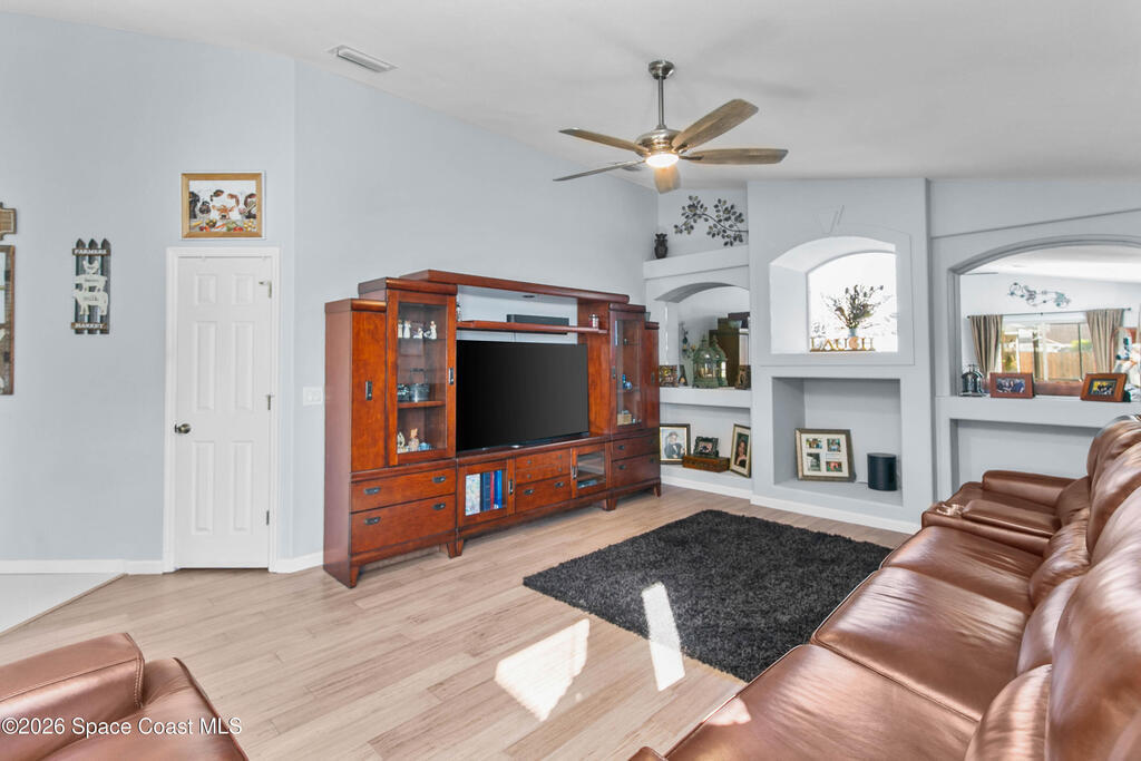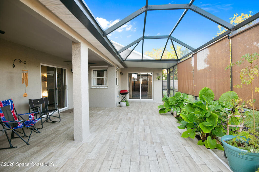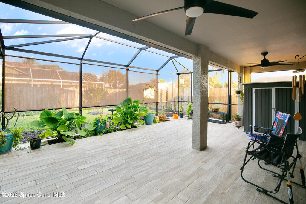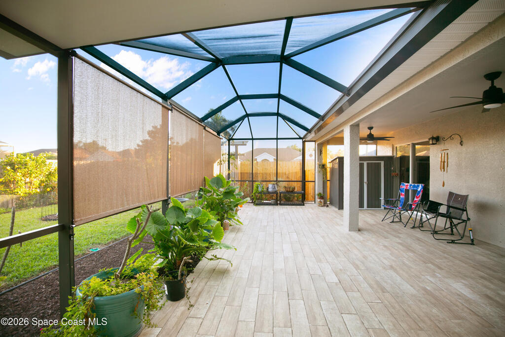 Comfort, style, and thoughtful upgrades come together in this over 2,000 sq ft home offering 3 bedrooms, 2 bathrooms, plus a versatile den - ideal for a home office, gym, or nursery. Located in the highly sought-after, deed-restricted Sunrise community of Suntree, this home combines comfort, convenience, and a quiet neighborhood setting.Thoughtfully updated throughout, highlights include all-new interior and exterior paint, a new smart thermostat, updated lighting and ceiling fans, and a new garage door opener with exterior keypad. The backyard has been completely refreshed with new sod, irrigation, fencing, fresh landscaping, and an added shed, creating a private outdoor retreat. The covered lanai features ceiling fans and privacy roll-up blinds (2025)--perfect for relaxing year-round.Enjoy easy access to Melbourne and Viera shopping and dining, with I-95 just minutes away, all while tucked into a peaceful, well-maintained community. *Virtual tour available*