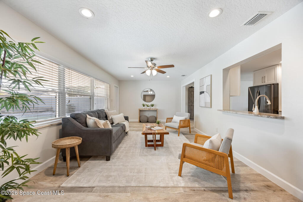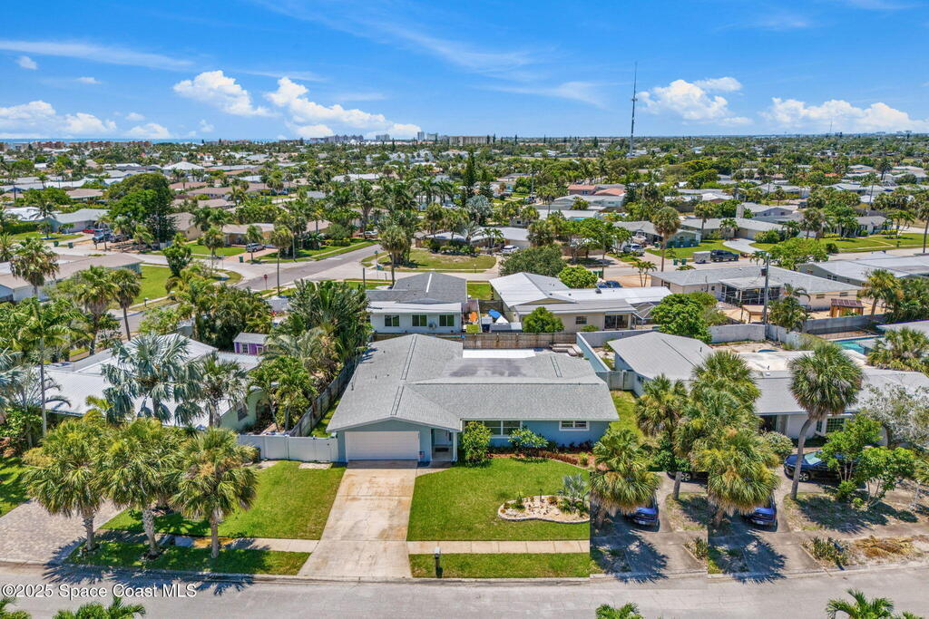 JJust two blocks from the ocean, this fully renovated 5-bedroom, 2-bath pool home offers over 2,500 sq. ft. of bright, coastal-inspired living in the heart of Satellite Beach. Renovated between 2017-2020, the home features a 2017 roof, wood-look tile throughout the main living areas, and soft carpet in select bedrooms. The open-concept, split-bedroom floor plan is ideal for both everyday living and entertaining. Step outside to your private backyard oasis, perfect for swimming, relaxing, or watching rocket launches light up the sky. Hurricane shutters provide peace of mind, and a washer and dryer are included for added convenience. Just a short stroll to the beach, library, dog park, skate park, and more, this home offers space, style, and an unbeatable beachside location.