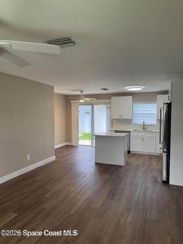 Fully renovated and move-in ready, this beautiful 3-bedroom, 2-bath home in Cocoa features a brand-new roof, A/C, and water heater--ensuring comfort and energy efficiency year-round. The home boasts a modern kitchen with quartz countertops, stainless steel appliances, and a center island, luxury vinyl plank flooring throughout, a spa-style bathroom with a walk-in shower, and an indoor laundry room with washer and dryer included. Freshly painted with sleek zebra blinds on every window, plus a covered carport and spacious yard, this home offers the perfect blend of style, function, and location--just minutes from shopping, schools, and the beach!