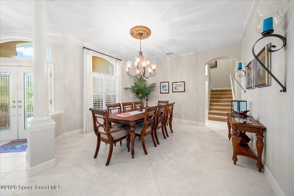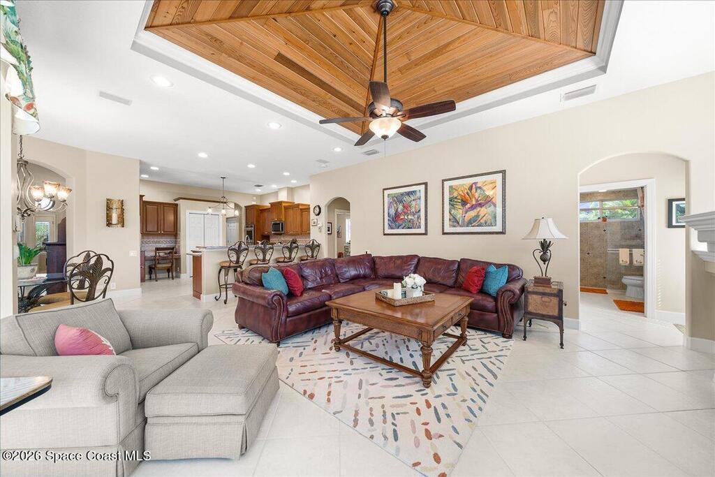 Tucked away on a private cul-de-sac in the gated subdivision of Baytree, this Arthur Rutenberg beauty is where elegance meets everyday fun! With 4 bedrooms, 4 baths, and a 3-car garage, there's space for everyone, and everything (tons of storage)! The heart of the home opens to a heated pool and lanai with sliders for seamless indoor-outdoor living. The designer kitchen is a chef's dream with granite countertops, a double oven, a spacious island, and a gas cooktop. Cozy nights come easy with a gas fireplace and custom surround sound, perfect for movie marathons or entertaining. Upstairs, a spacious rec room is ready for games, hobbies, or hangouts. Step outside and soak in views of the 13th green at Baytree National, surrounded by lush landscaping and amazing views of rocket launches. This home is equal parts luxury and lifestyle, come see why you'll never want to leave!