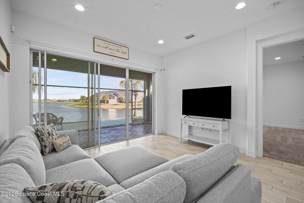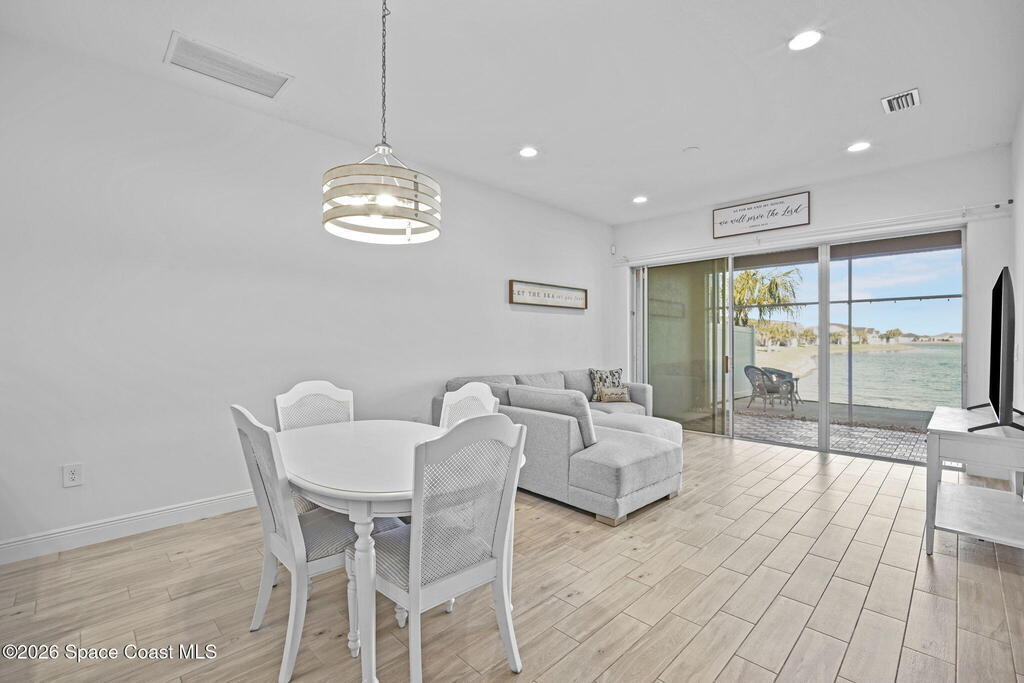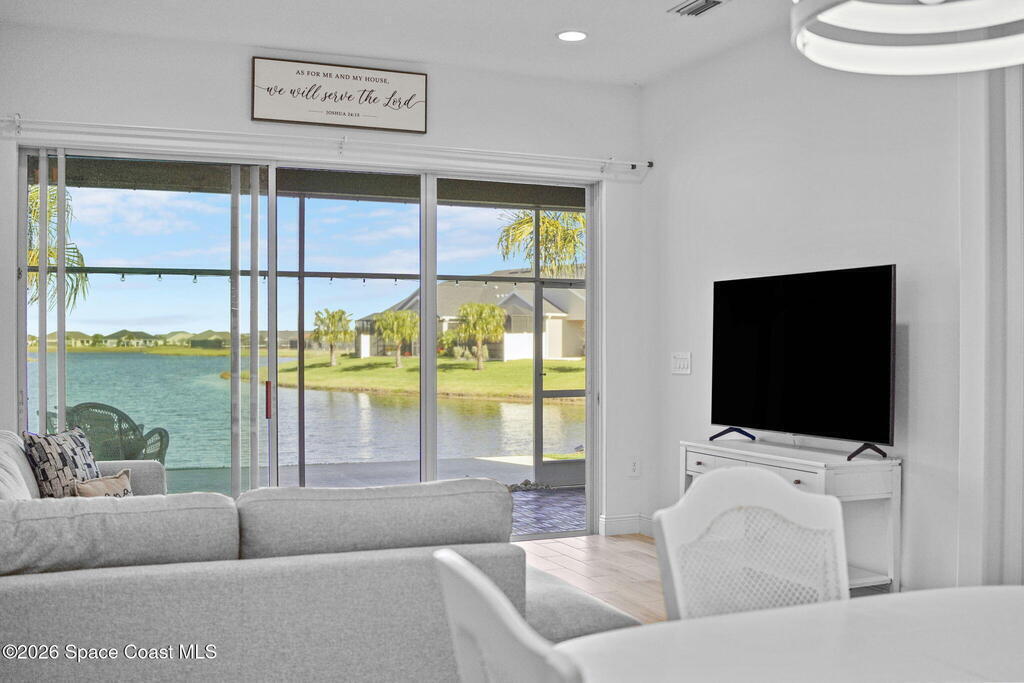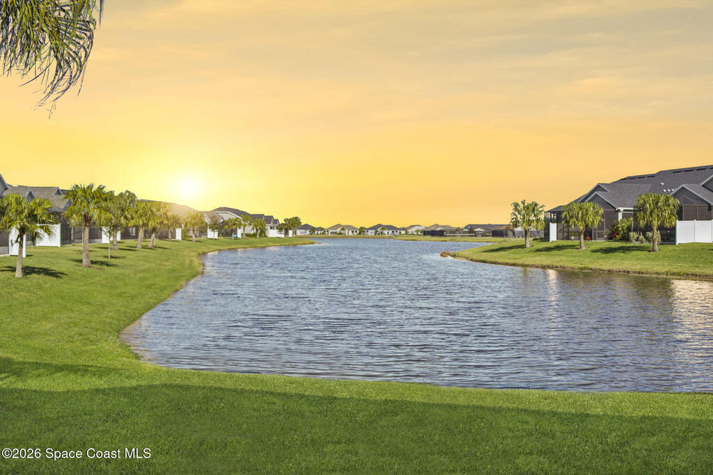 Welcome to your dream home in Avalonia, located in the heart of Viera, Florida, with a golf cart included. This upgraded 3-bedroom, 2-bath interior townhome offers just over 1,400 square feet of comfortable living with over $30,000 in upgrades and a $20,000 premium water lot.Inside, you'll find custom blinds, California closets, and wood-look tile throughout the main living areas. The kitchen features stainless steel appliances including a gas stove, tile backsplash, breakfast bar, and 42-inch cabinets. The family room opens to peaceful water views through a double sliding glass door.The primary bath includes a large walk-in shower and double sinks. Enjoy the covered back porch with custom wood decking and a picture screen. The HOA covers roof replacement, lawn care, exterior paint, termite and pest control, basic cable, and internet for low-maintenance living.