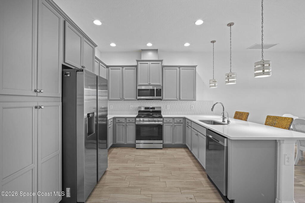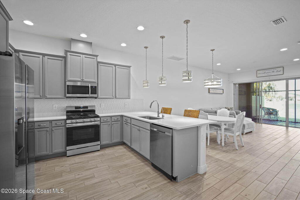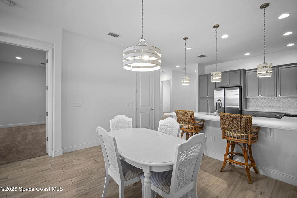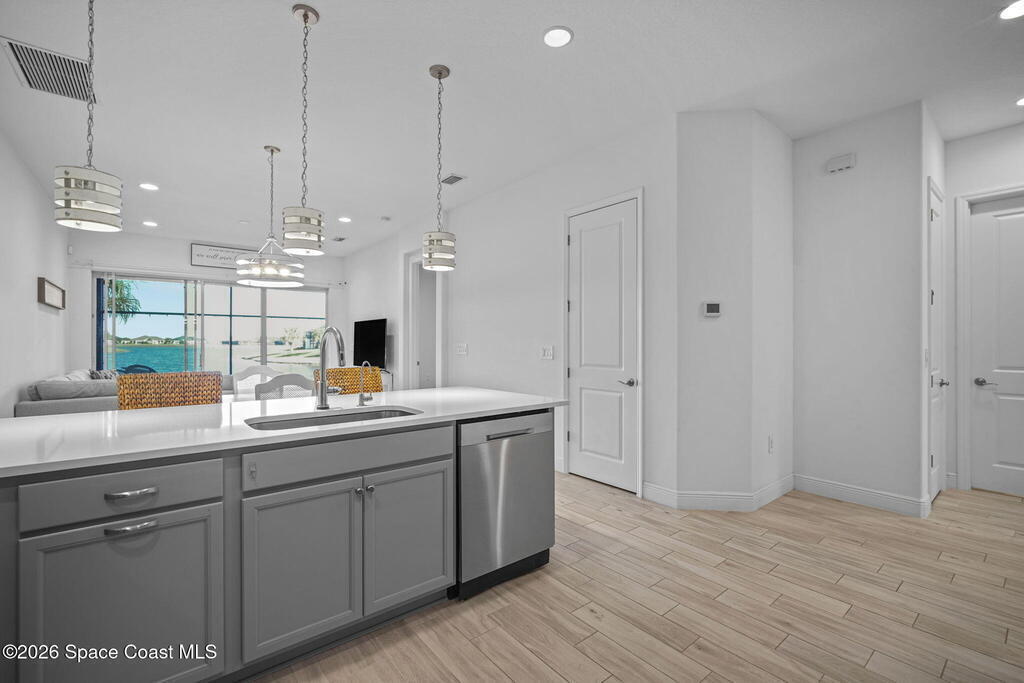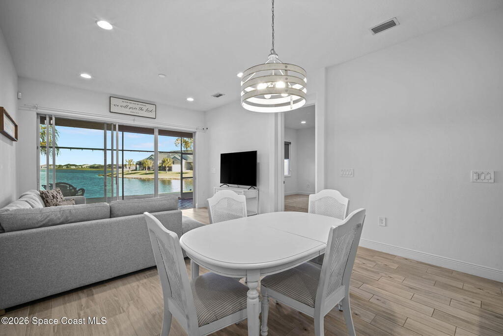 Welcome to your dream home in Avalonia, located in the heart of Viera, Florida, with a golf cart included. This upgraded 3-bedroom, 2-bath interior townhome offers just over 1,400 square feet of comfortable living with over $30,000 in upgrades and a $20,000 premium water lot.Inside, you'll find custom blinds, California closets, and wood-look tile throughout the main living areas. The kitchen features stainless steel appliances including a gas stove, tile backsplash, breakfast bar, and 42-inch cabinets. The family room opens to peaceful water views through a double sliding glass door.The primary bath includes a large walk-in shower and double sinks. Enjoy the covered back porch with custom wood decking and a picture screen. The HOA covers roof replacement, lawn care, exterior paint, termite and pest control, basic cable, and internet for low-maintenance living.