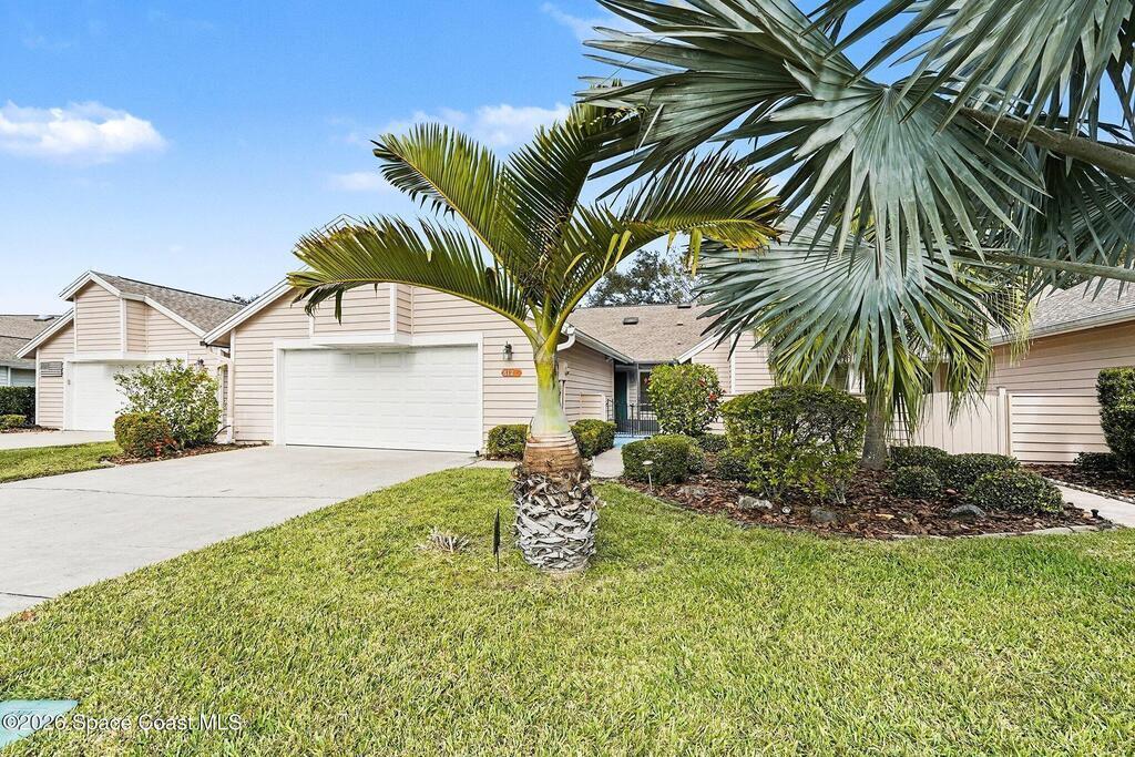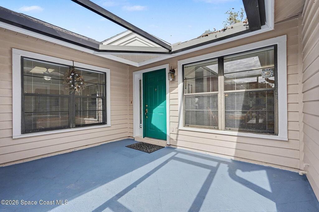 ASK ABOUT the 3% ASSUMABLE VA MORTGAGE on this pristine single-story townhome in desirable Suntree ON THE GOLF COURSE. The 1594 sf under air includes a FLEX SPACE for your office/den/guests. It is time to relax on the sunny courtyard or screened porch area. The kitchen boasts unique granite counters, a breakfast bar & cozy dining nook. The open living/dining area leads into the large flex space. There is a separate vanity area with a large walk-in closet plus a tub/shower & a shower stall in the primary bathroom. The guest bedroom is off the front porch in this split plan providing privacy for all. The oversized garage has a built-in workbench, redone floor & ceiling plus attic access. Everything is included-furnishings, dishes, linens (with a few exceptions) so you can move-in & enjoy the Florida lifestyle right away. HOA covers exterior & lawn maintenance, master insurance & the community pool & clubhouse. Close to the shopping & dining of Suntree/Viera. See Features Sheet.