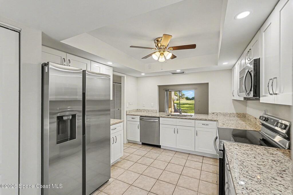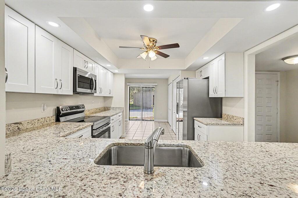 Riverfront living at its finest! This extremely quiet end-unit condo is perfectly situated on the banks of the Intracoastal Waterway, offering peaceful riverfront views framed by majestic oak trees from both the living room and bedroom. Wake up to beautiful sunrises over the water and unwind in the evenings as the lights from both causeways shimmer across the river. Enjoy front-row views of Fourth of July fireworks, watch space launches light up the sky, and take advantage of the close proximity to Port Canaveral. Conveniently located near the resort-style riverfront pool, this home also offers direct access for kayaking, canoeing, and paddleboarding right from your backyard. The HOA covers cable, internet, water, sewer, exterior maintenance, roof replacement, and access to the riverfront pool, making this an exceptionally low-maintenance property.