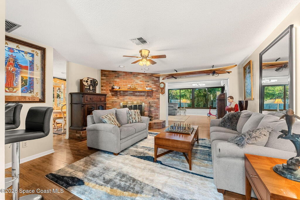 Welcome to 44 Berkley Square, a lovingly maintained 3-bedroom, 2-bath home tucked away on a quiet cul-de-sac just blocks from the Indian River. This inviting property offers the perfect blend of comfort, privacy, and Florida outdoor living.Step inside to find a formal living room with a cozy wood-burning fireplace, ideal for relaxing evenings, while the expansive family room provides plenty of space for entertaining friends and family. The home has been freshly painted, creating a clean, move-in-ready feel throughout.Out back, enjoy your own private oasis -- a screened-in pool overlooking a peaceful nature preserve, offering serene views and exceptional privacy. With no HOA, you'll also appreciate the flexibility of a 2-car garage plus side parking for a boat or RV, perfect for those who love the Florida lifestyle.Additional highlights include a roof replaced in 2020, fully paid solar panels, and a large interior laundry room with extra refrigerator for added convenience.