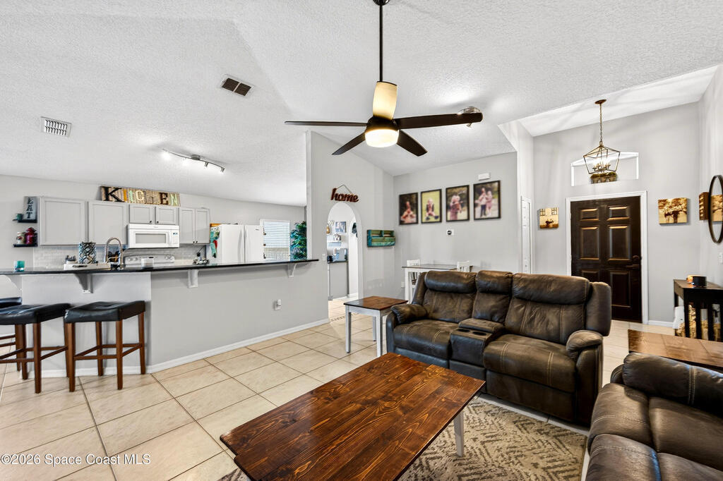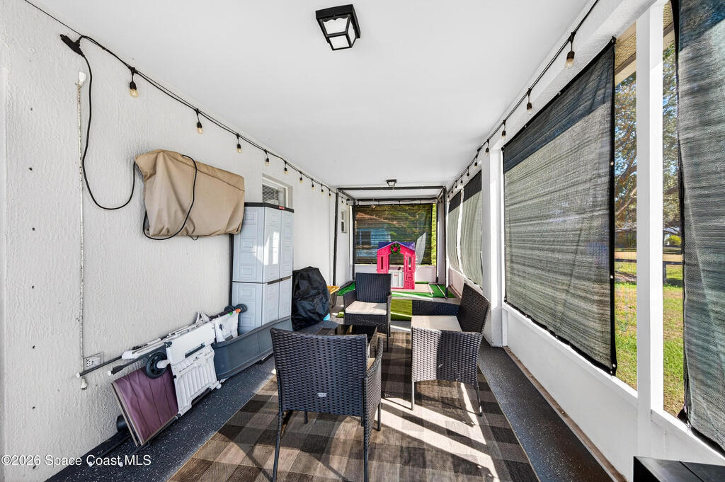 You will LOVE this 3 Bedroom, 2 Bath home in popular Trail's End Subdivision! Move-in Ready! Property has a fully fenced back and side yards. Open concept, with high ceilings, give the home a large welcoming feel. Huge screened porch provides great outdoor space! Property has Storm Shutters and New METAL ROOF installed in 2021, HVAC inside and out 2021, Gutters with French Drains from Downspouts! Home even has Govee exterior soffit lighting! Convenient to I-95, 528 and US1. Short trip to Orlando Theme Parks, Beaches and Port Canaveral!