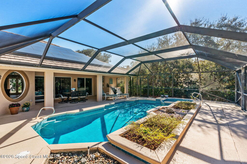 Exceptional opportunity for nature lovers located in the prestigious deed-restricted community of Mark's Landing. This immaculate home offers 2 Tesla Power Walls reducing energy costs significantly. The property is situated on an elevated .81-acre estate lot that backs up to a 400-acre Maritime Hammock Preserve. Directly across A1A, just a 5-min walk to our quiet beautiful beaches. It is surrounded by wildlife sanctuaries and conservancy tracts close to hiking trails and Indian River kayak access, making the home feel like a private nature preserve.Residence features: Modern open floor plan, Large master ensuite, 2 additional bedrooms plus a 4th bedroom/office. Trussed screened, heated saltwater pool and built-in hot tub spa with a waterfall and outdoor kitchen is perfect for entertaining.Nearby amenities include the Sebastian Inlet, the Gemini award-winning grammar school and downtown shopping and restaurants.