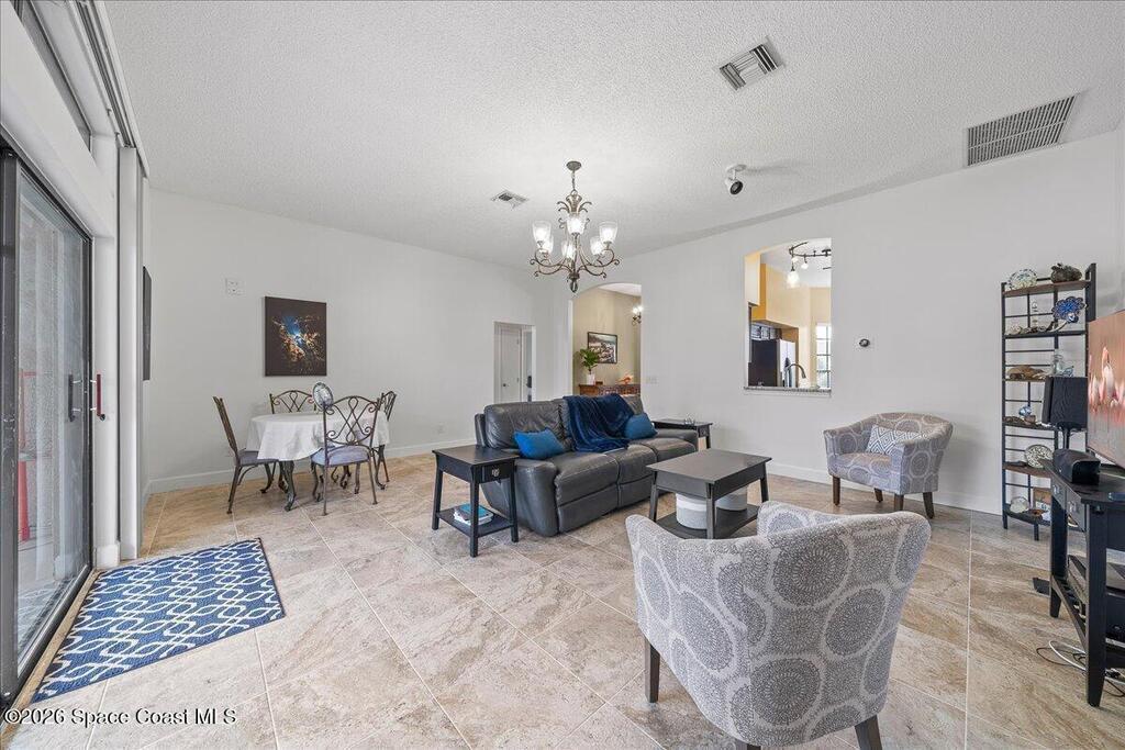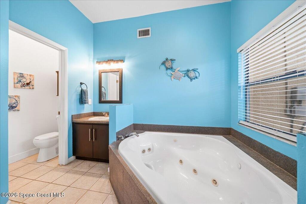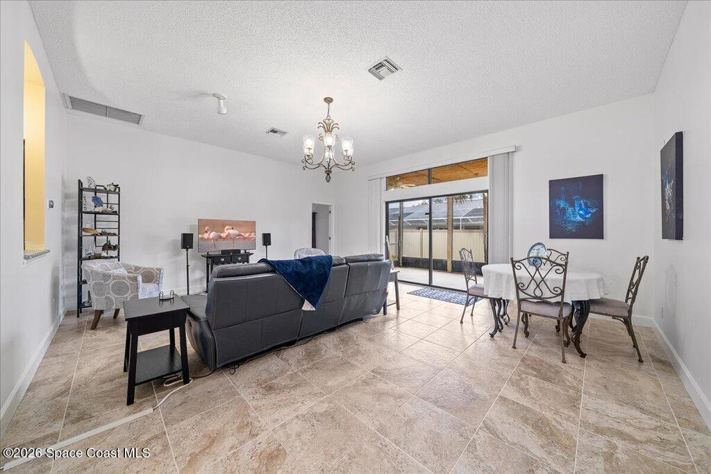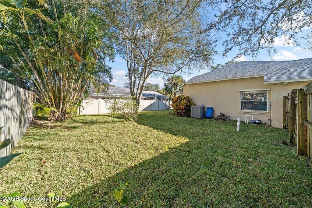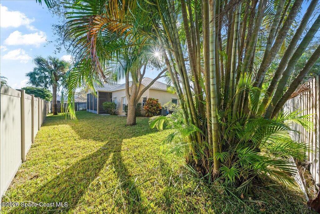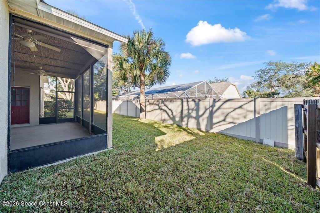 Set on a freshly sodded corner lot in the heart of Melbourne in Wickham Forest, this inviting home offers easy living with thoughtful updates throughout. Vaulted ceilings and natural light create an airy and welcoming feel from the moment you step inside, drawing your eye to the screened in patio and private, fenced backyard.The open flow between the great room and the eat-in kitchen makes everyday life and entertaining effortless. Retreat to the spacious primary suite where large windows, private patio access and generous walk in closet create a true sanctuary. The ensuite bath is designed for unwinding featuring dual vanities, soaking tub and a separate shower.Two additional bedrooms are on the other side of the family room,ideal for guests or a home office.A large laundry room off the kitchen allows for pantry storage and leads to the two car garage for convenience.A 2023 roof, accordion shutters new irrigation, paint,and tile throughout add peace of mind and durability.