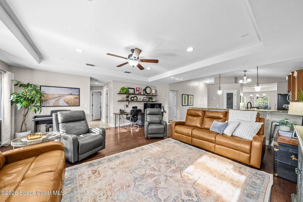 If you are looking for a home that offers privacy, convenience, and the ideal Space Coast location, this Rockledge property is one you do not want to miss. This beautiful 4-bedroom, 2-bath home offers a refined blend of comfort, space, and privacy. Thoughtfully designed living areas are filled with natural light and create an effortless flow for both everyday living and entertaining. Four spacious bedrooms provide flexibility for family living, guest accommodations, or a dedicated home office. From watching rocket launches from your private primary suite balcony to stepping outside to a serene backyard that backs up to a private sanctuary, offering rare privacy, peaceful views and immaculate sunsets with no rear neighbors. This home delivers both lifestyle and convenience in a sought-after Rockledge setting.You're just 13 minutes to Patrick Space Force Base, 13 minutes to the beach, 30 minutes to Kennedy Space Center, 45 minutes to Orlando making this the perfect home.