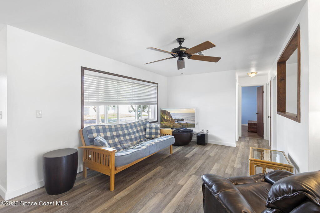Welcome home to comfort, space, and easy Florida living! This charming 3-bedroom, 2-bath home checks all the right boxes--starting with a huge backyard and an oversized screened patio that's perfect for morning coffee, evening gatherings, or letting the kids play while you relax. Inside, you'll love the brand-new hurricane-rated windows and slider, no carpet anywhere, an updated guest bathroom, and walk-in closets in all three bedrooms--because storage matters. Even better? All furniture can stay, making this home truly move-in ready. Big-ticket updates are already done with a 2023 roof, 2016 A/C, and 2010 water heater. Set in an amazing, established neighborhood where kids still ride their bikes, this home is just minutes from Publix, the Indian River Lagoon, and I-95 for easy trips to Orlando. Cozy, practical, and perfectly located--this one just feels like home.