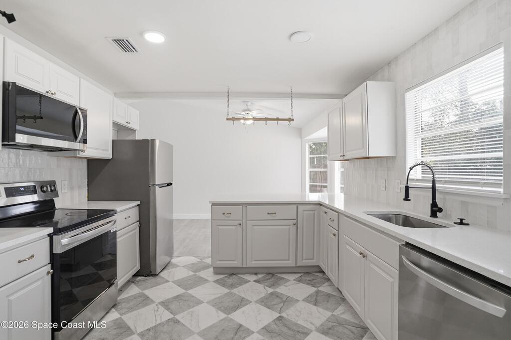 Welcome home to this well-maintained 3-bedroom, 2-bath residence in Cocoa, Florida. Featuring a brand-new 2024 roof and a newer A/C system, this home offers peace of mind and long-term value. The kitchen has been nicely updated with stainless steel appliances and quartz countertops, perfect for both everyday living and entertaining. Throughout the home, enjoy luxury vinyl waterproof wood flooring, creating a modern, cohesive look that's both stylish and durable. The functional layout is complemented by a large backyard, ideal for entertaining, pets, or future outdoor living possibilities. Conveniently located and move-in ready--now is the time to run to this home and make it your own!