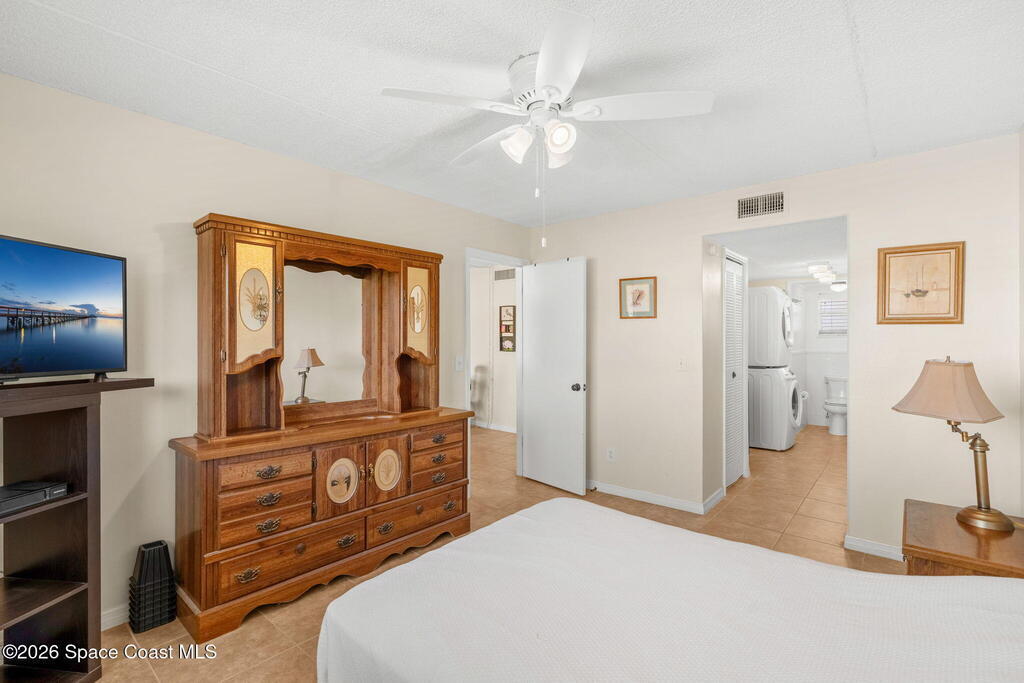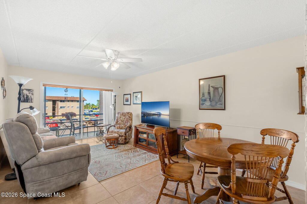 Enjoy easy Florida living in Shady Dell Riverside South, a well-maintained 55+ riverfront community. This bright 1 bedroom, 1.5 bathroom condo features great natural light and a desirable north/east exposure, ideal for enjoying rocket launches. The spacious living/dining combo offers a comfortable layout, complemented by neutral ceramic tile flooring throughout for easy maintenance.The open kitchen provides good flow, while the screened-in porch is perfect for relaxing with a side view of the Indian River. Additional features include a stackable washer and dryer in the unit and ample closet space and storage.The community offers lush green space, picnic areas, and a large pool with clubhouse. One assigned parking space plus plenty of guest parking. Conveniently located near shopping, dining, and with easy access to all major roadways.