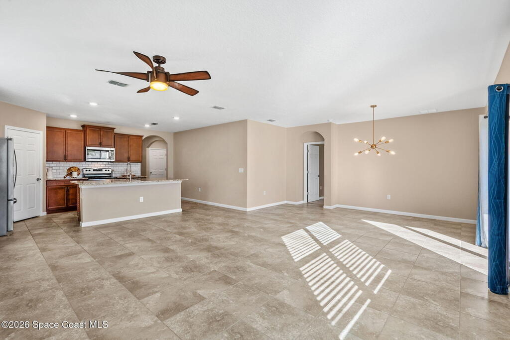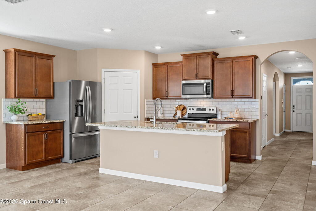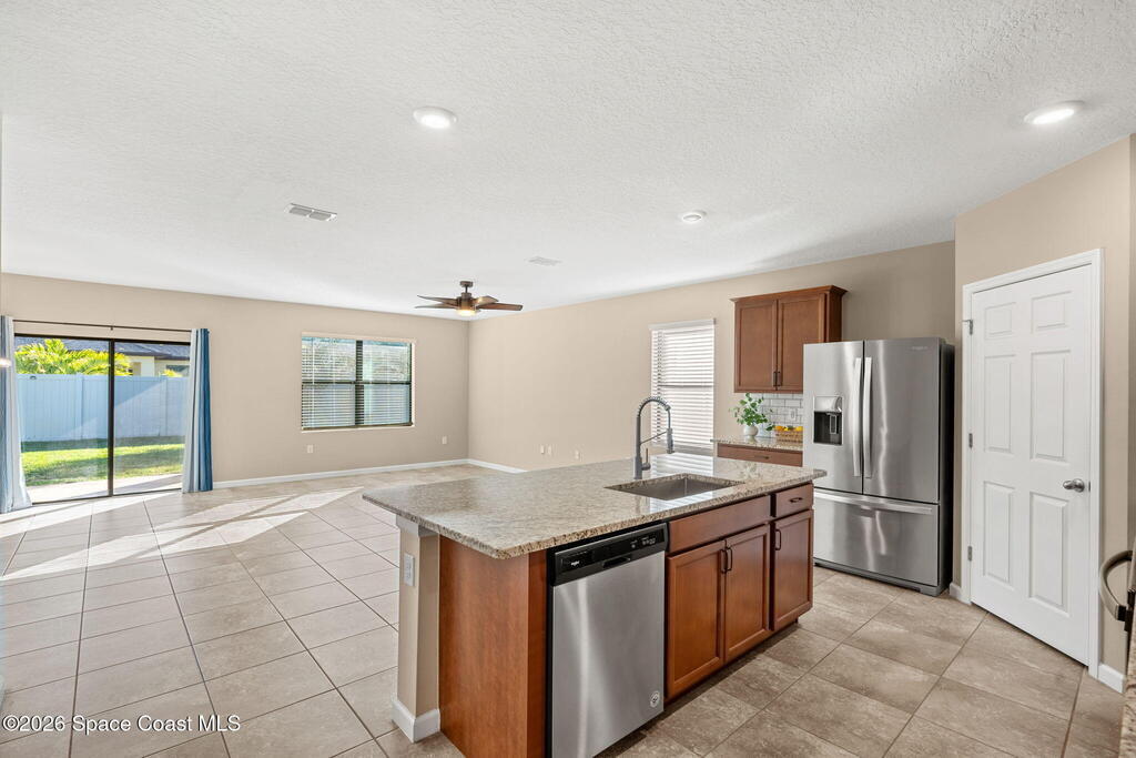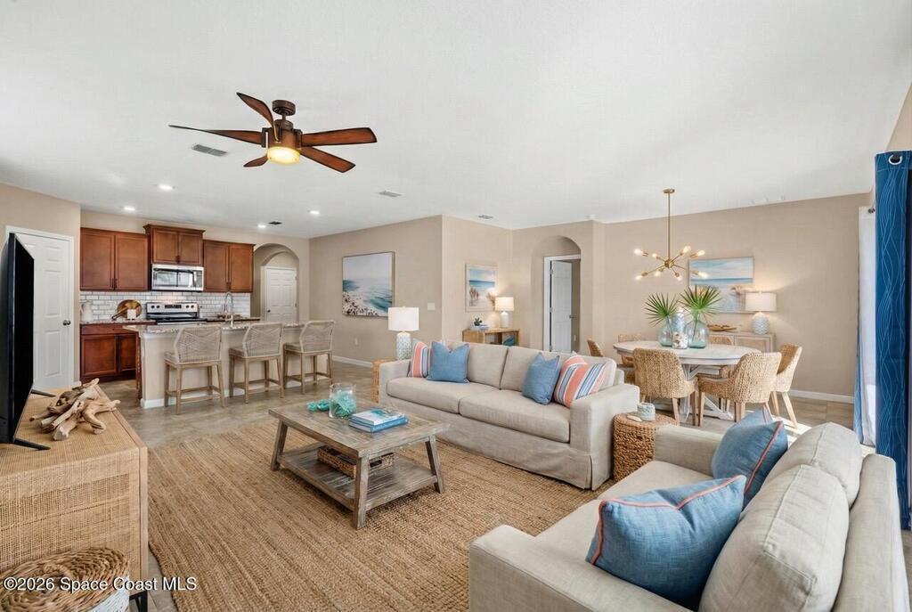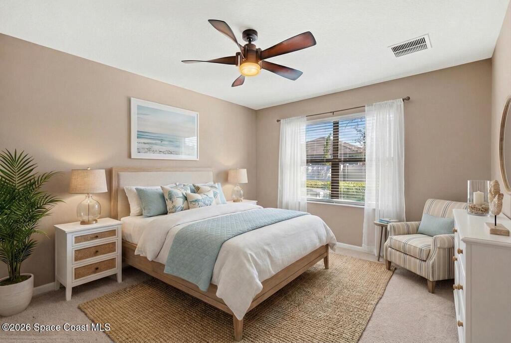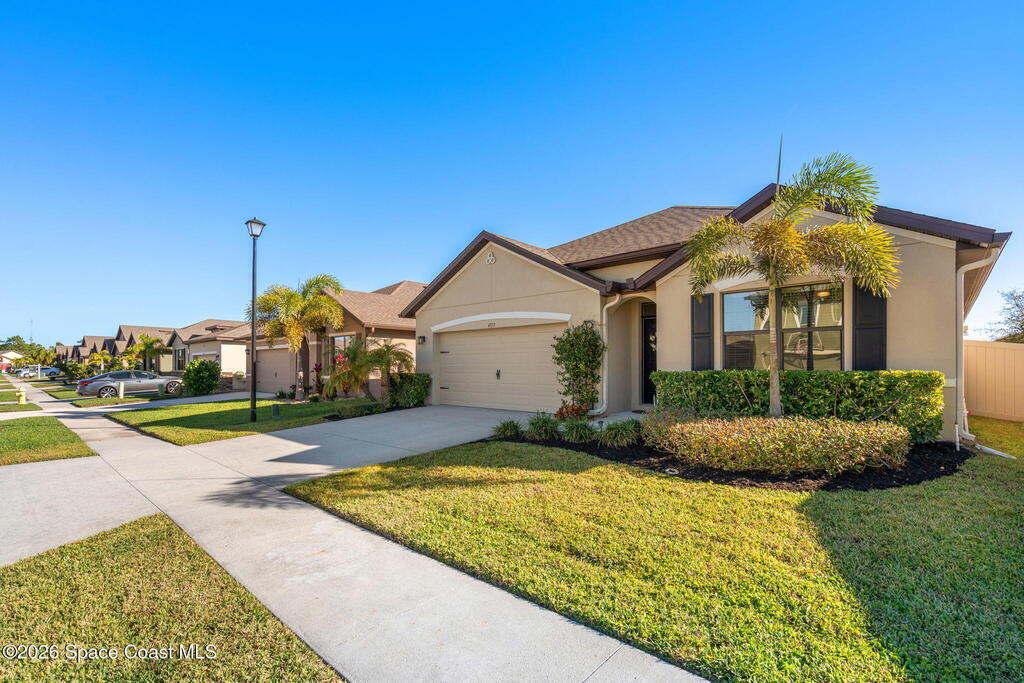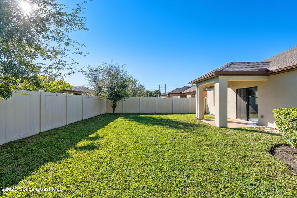Newly built in 2021 and move-in ready, this well-maintained 4BR/2BA home offers 1,908 living SF of open-concept living. The kitchen features upgraded granite countertops, a spacious island w/ breakfast bar seating, SS appliances, upgraded faucets and refrigerator, classic subway tile backsplash, and a walk-in pantry- many of the upgrades set this home apart from the others. The primary suite includes a walk-in closet and en-suite bath w/ dual sinks, granite countertops, and a walk-in shower. Three additional bedrooms provide flexibility for guests, a home office, or hobbies, and a dedicated laundry room adds convenience. An Apple smart home system controls lighting, door locks, thermostat, security, and more. Outside, enjoy the vinyl-fenced backyard with upgraded St. Augustine grass, ideal for pets, play, and entertaining. Located in the family/pet-friendly Southhampton Lakes community w/ a dog park. Close to shopping, dining, major employers, including L3 Harris, I-95, and much more!