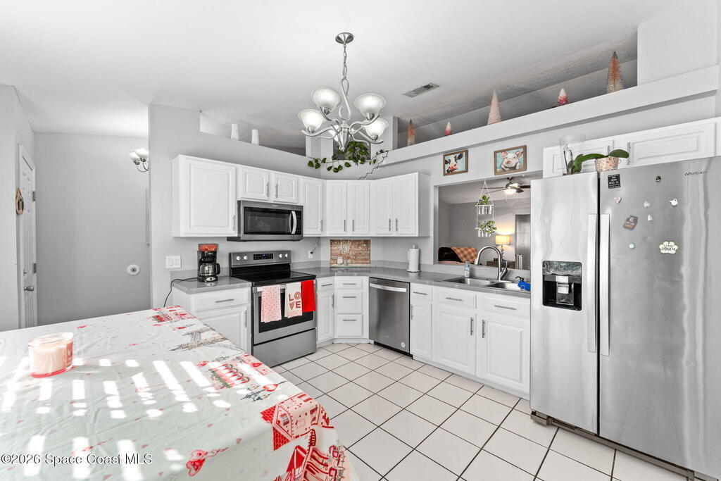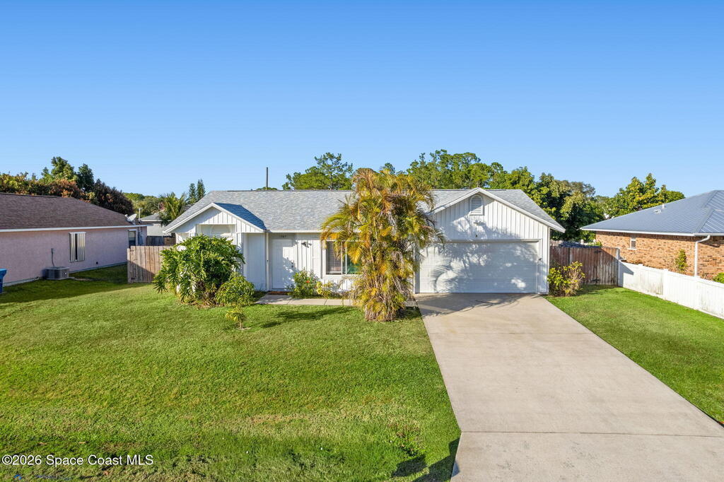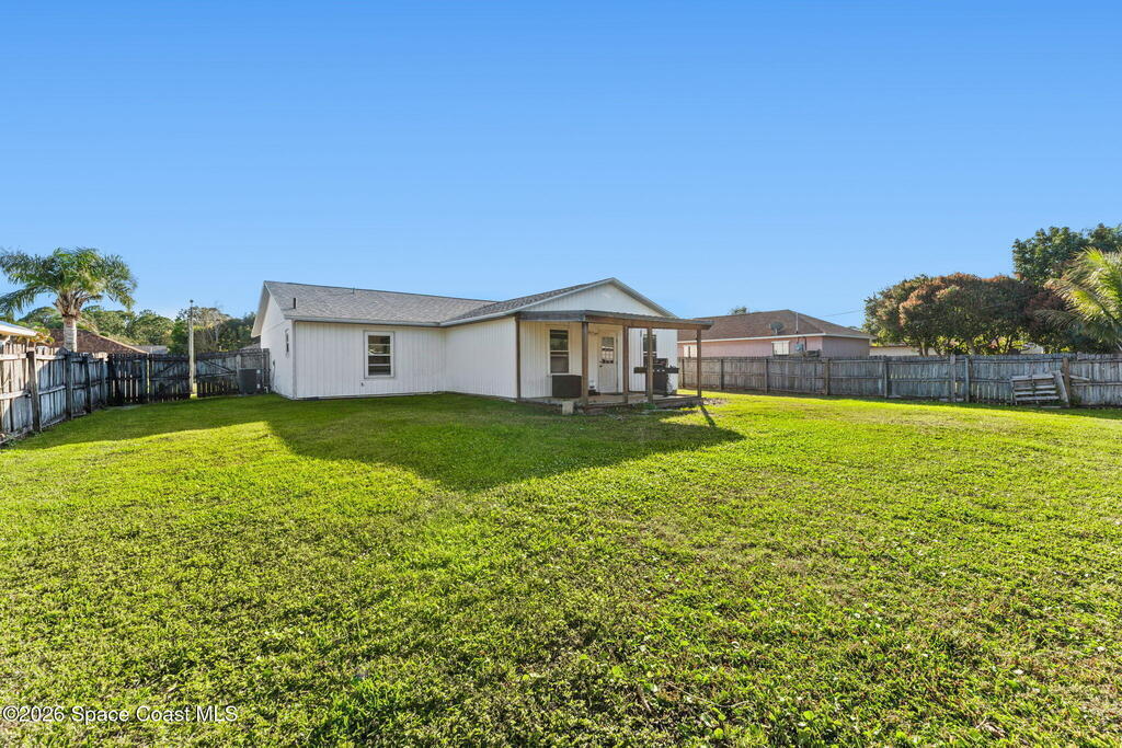 Step into space, style, and serious flexibility in this 5-bedroom Palm Bay gem that refuses to be ordinary. Vaulted ceilings create an airy, open feel the moment you walk in, while the smart split-bedroom layout gives everyone their own slice of privacy. Carpet and tile flow seamlessly throughout, blending comfort with easy living. The newer roof means big-ticket peace of mind, and the covered back porch is your go-to spot for morning coffee, weekend grilling, or winding down after a long day. Out back, a fully fenced yard is ready for pets, play, or that backyard vision you've been dreaming up. With five bedrooms, two full baths, and a 2-car garage, this home delivers room to grow without sacrificing functionality. It's bold, it's practical, and it's ready for its next chapter. Claim it! Live it! Love it!