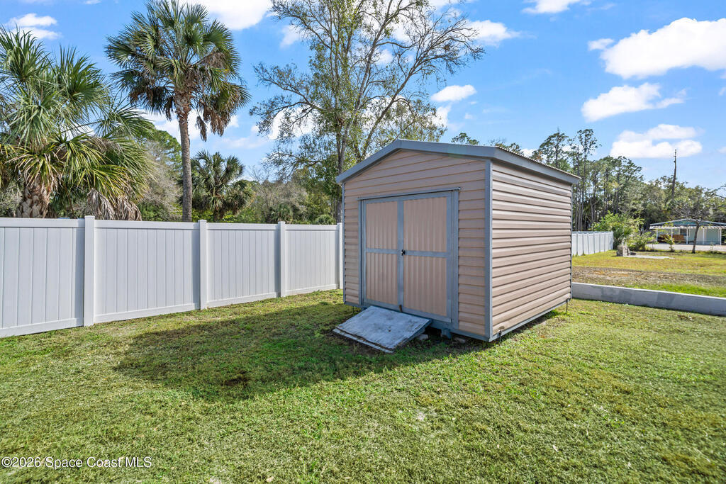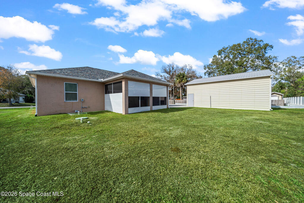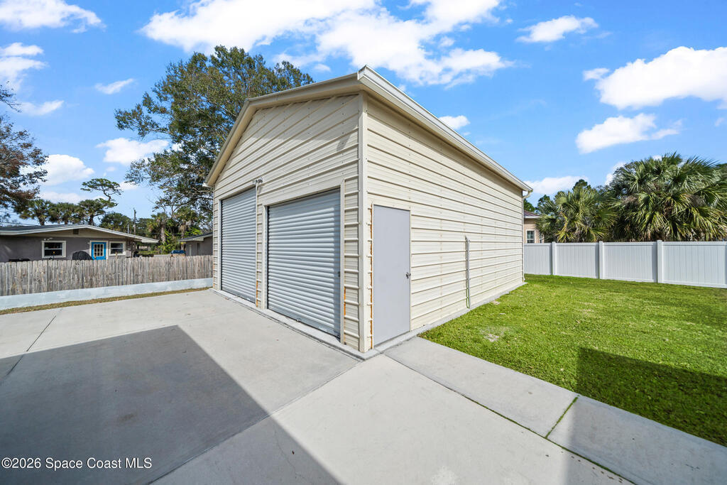 Welcome to this 3-bedroom, 2-bath residence where refined craftsmanship meets exceptional functionality with NO HOA!! The home features a 2-car oversized garage along with a separate, fully equipped garage/workshop complete with a car lift & 100 amp sub panel which offers a rare and highly desirable amenity for collectors, hobbyists, or those seeking premium versatility. An extended driveway provides generous parking, while hurricane impact windows deliver both security and peace of mind. Inside, the kitchen is highlighted by custom wood finishes, creating a warm yet upscale aesthetic that blends timeless character with modern appeal. Outdoors, the expansive covered back porch serves as a private retreat, and a 50 amp for hot tub hook-up, ideal for relaxing or entertaining in a serene setting. Perfectly positioned near shopping and dining, this peaceful property offers privacy and convenience without HOA restrictions.