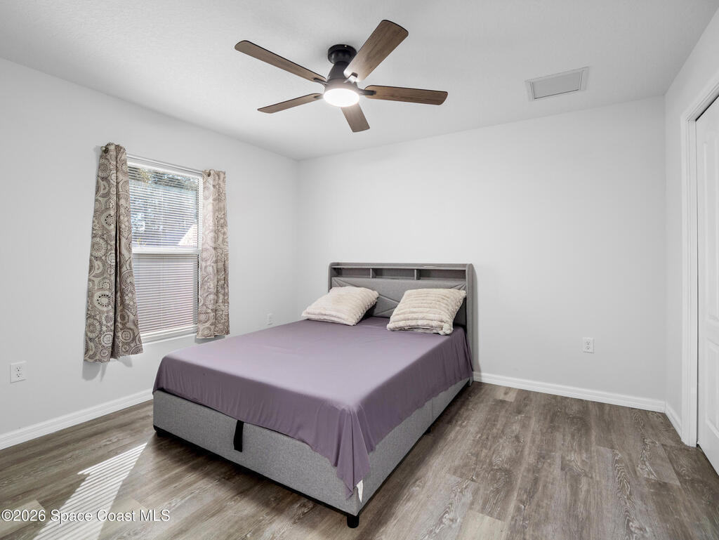 Price Improvement!Beautifully maintained 4-bedroom, 2-bath home situated on a desirable corner lot in SE Palm Bay. Recently adjusted to offer exceptional value, this property is move-in ready and thoughtfully upgraded.This home features a functional open layout with a split-bedroom floor plan for added privacy. Enjoy a fully fenced yard, complete gutter system, tinted windows for energy efficiency and privacy, and attractive soffit lighting that enhances curb appeal. Connected to city water for added convenience.The kitchen comes fully equipped with all appliances, including washer and dryer. A water softener system is also included, providing enhanced water quality and long-term benefit.With desirable exterior enhancements and a competitive new positioning, this home is ready for its next owner. Schedule your showing today.