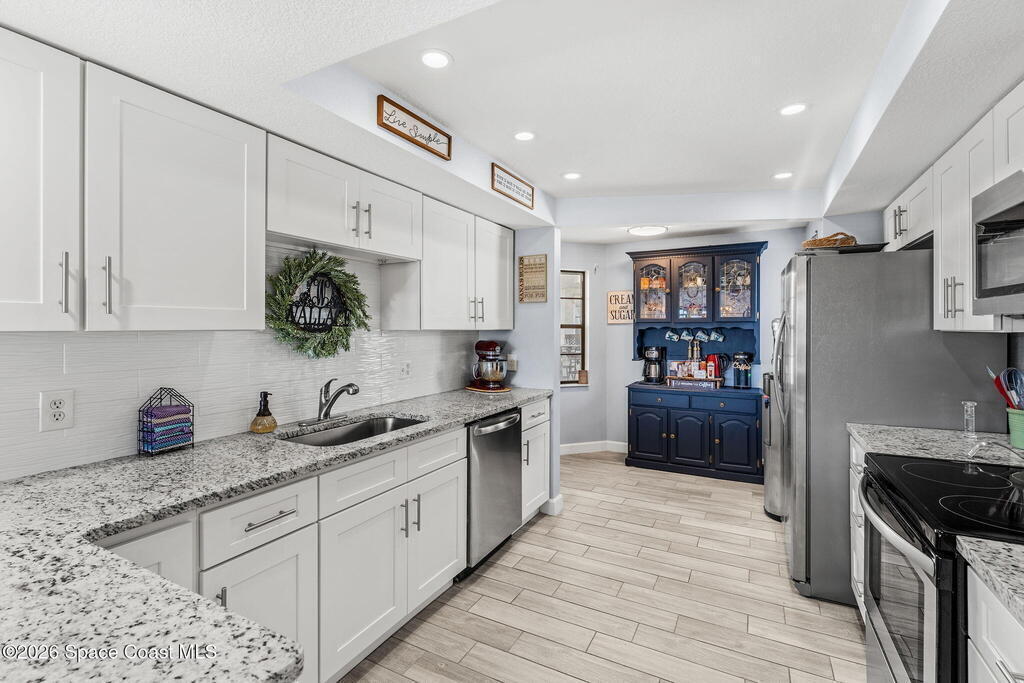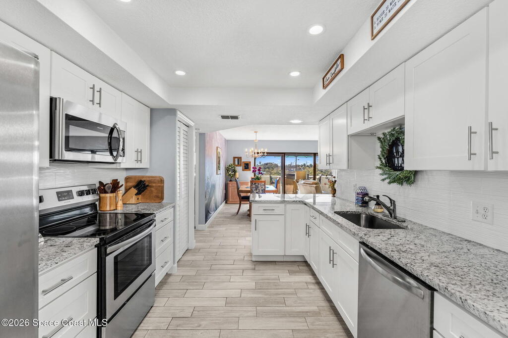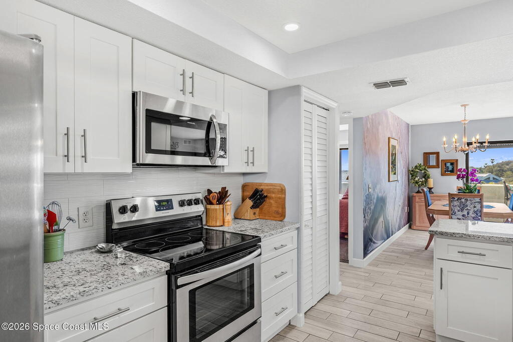 Experience a truly unique riverfront lifestyle at Rhum Cove, a gated waterfront community offering a private marina with deeded boat slips -- all at an exceptional value. This sought-after complex delivers a yacht-club feel with amenities including a waterfront pool, pickleball courts, fitness center, sauna, clubhouse, dock, and secure gated entry.This desirable southwest-corner unit features 3 bedrooms and 2 bathrooms with expansive river views and stunning sunsets. Interior highlights include wood-look tile flooring, granite countertops, quad sliding glass doors, a recently renovated bathroom, in-unit laundry, and a 1-car garage. Additional updates include a 2019 A/C with UV system, 2024 water heater, and roll-down shutters for added comfort and protection.All pending assessments have been paid by the seller, offering peace of mind for the next owner. Whether you're a boater, river enthusiast, or simply seeking a lock-and-leave waterfront lifestyle this is a cannot miss!