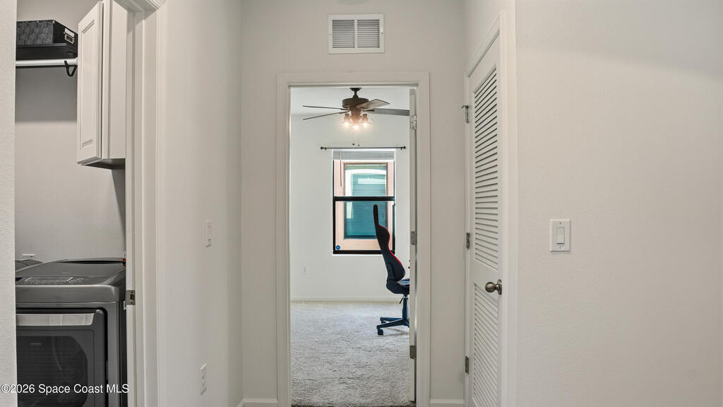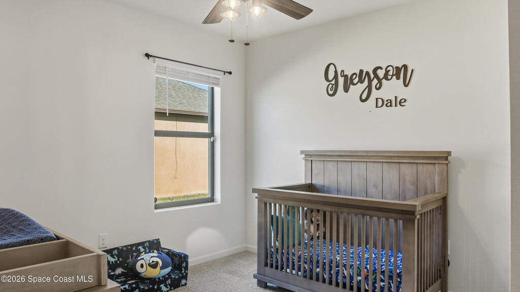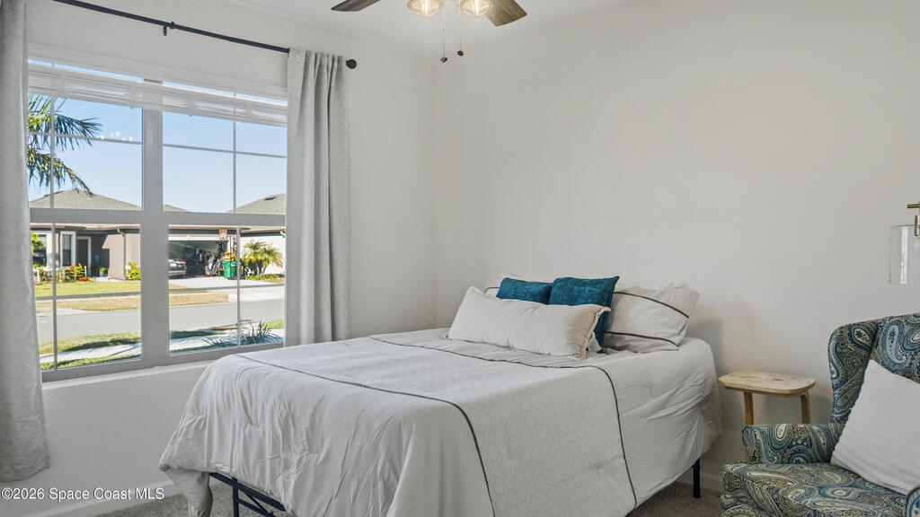 Relax on your covered lanai with serene waterfront views and effortless Florida living, or take the nearby walking trail that leads directly to the community pool and playground. The spacious kitchen is designed for both everyday living and entertaining, featuring a large center island, walk-in pantry, and seamless flow into the dining and living areas. The private owner's suite offers a generous layout, a double-vanity bath, and an oversized walk-in closet. Three additional bedrooms and a full guest bath provide plenty of space and flexibility. Ceiling fans throughout the bedrooms and living area add comfort, while the garage includes a built-in storage system for optimal organization. The home is pre-wired for smart technology and a security system. Outside, the lawn showcases new sod and an economical irrigation system powered by its own well. Adamson Creek offers convenient access to I-95, Cape Canaveral, and local beaches, and is 30 minutes from Orlando International Airport.