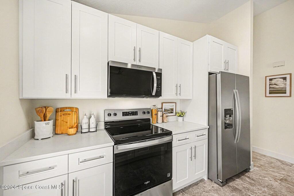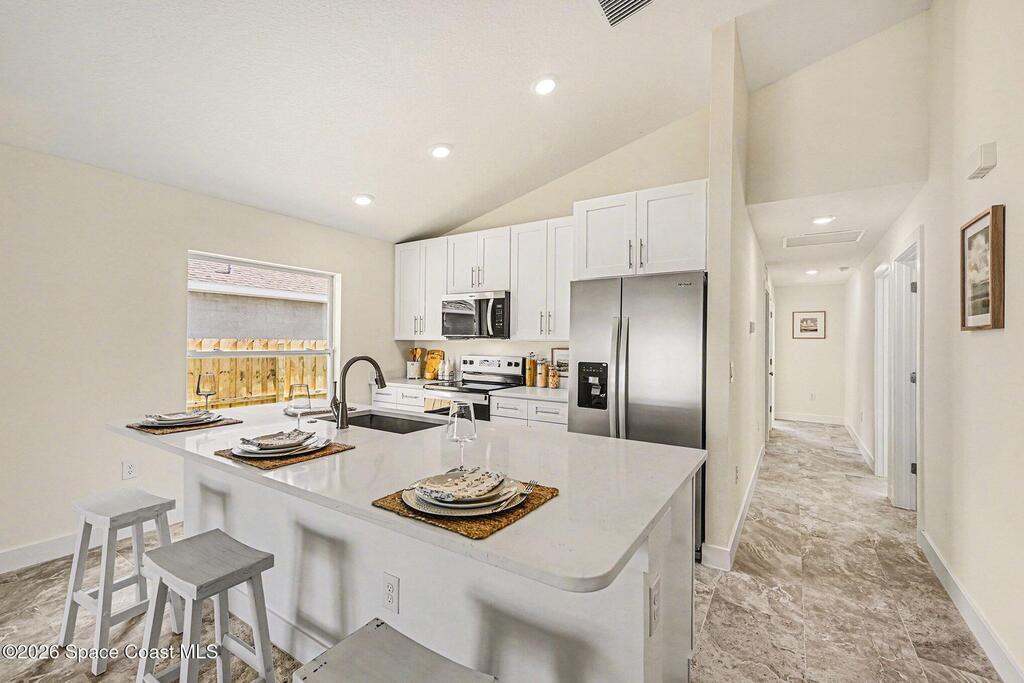 Brand new and waiting for you! This stunning new construction home is available with a $5,000 credit toward the buyer's closing costs--MOVE-IN READY! Here's your chance to own a beautifully designed residence featuring 3 bedrooms, 2 bathrooms, and a convenient 1-car garage.The open-concept layout is ideal for modern living, showcasing a spacious and bright kitchen with a large center island, upgraded quartz countertops, and Whirlpool stainless steel appliances, including a range, refrigerator, dishwasher, and over-the-range microwave.Elegant tile flooring extends throughout the home, providing a sleek and cohesive aesthetic. The primary suite comes complete with a walk-in closet and a private en-suite bathroom for added comfort. Additional features include impact-windows, an indoor laundry room, an epoxy-coated garage floor, a fenced backyard for enhanced privacy, and an efficient irrigation system for the yard. This home perfectly combines modern elegance with everyday practicality!