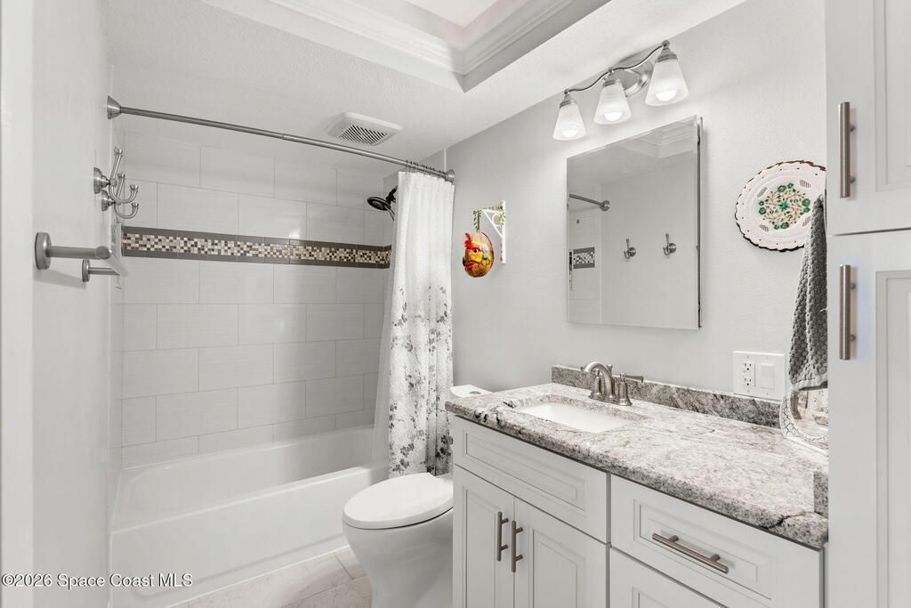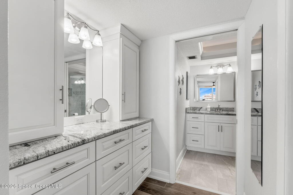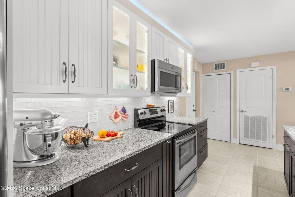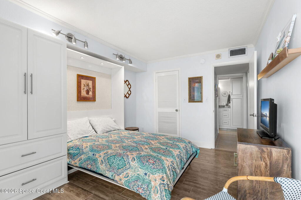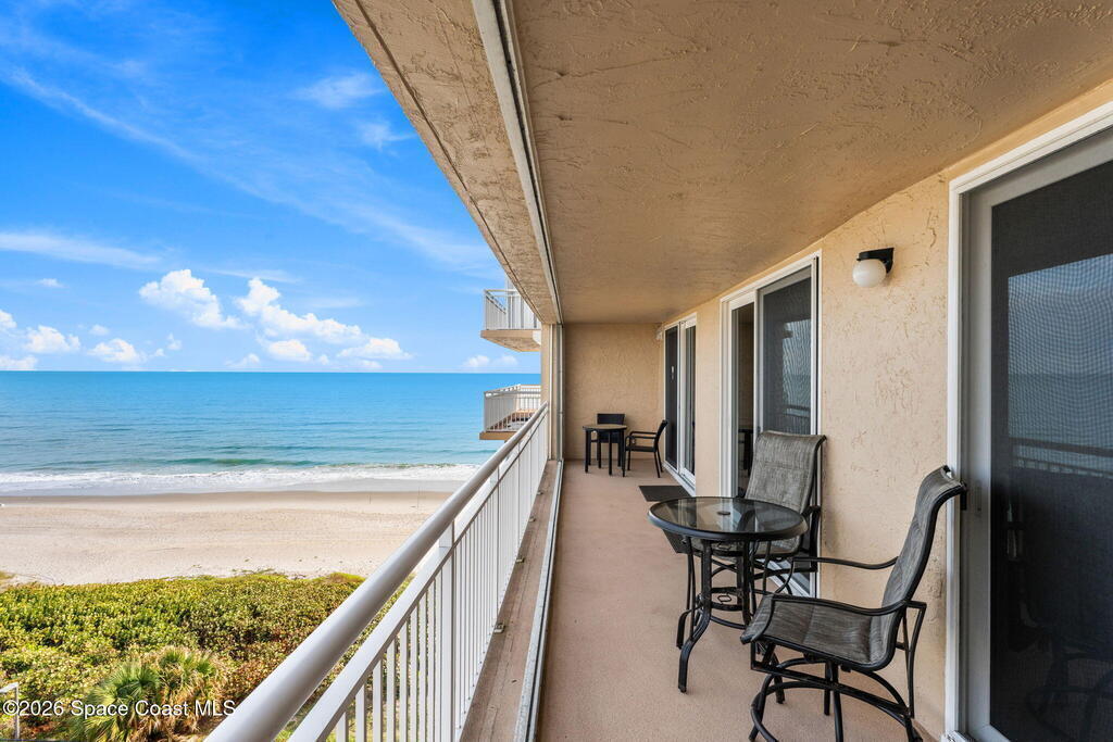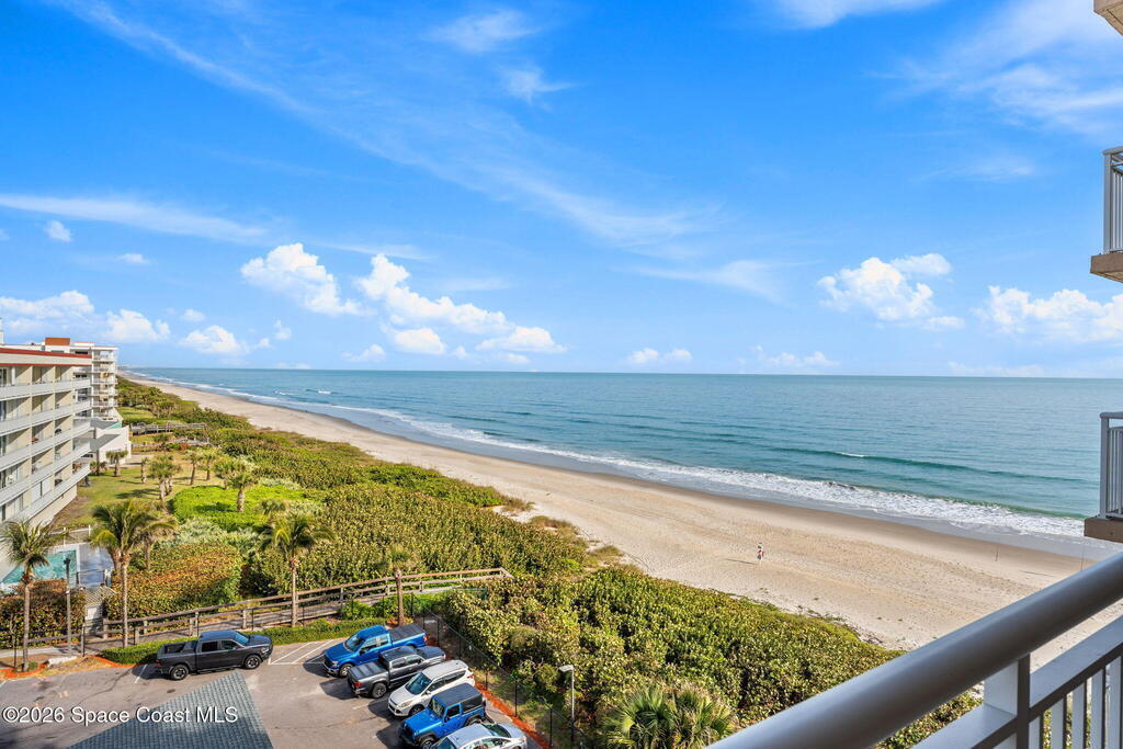 7th FLOOR TWO BEDROOM TWO BATH CONDO, ABSOLUTELY BEAUTIFUL UNIT, SEE THE OCEAN EAST & NORTH VIEW & FROM YOUR LARGE BALCONY WATCH SUN RISES, CRUISE SHIPS GOING BY, & SEE ALL THE ROCKET LAUNCHES ESPECIALLY THE NIGHT ONES. ENJOY SPECTACULAR SUN SETS. YOU WILL ABSOLUTELY LOVE THIS ENLARGED CUSTOM DESIGNED KITCHEN, THE TOP CABINETS WITH GLASS DOORS & LIGHTS, CROWN MOLDING, & ABOVE TO CEILING LIGHTING, BOTTOM CABINETS ARE CUSTOM DARK COLOR , WITH BEAUTIFUL GRANITE COUNTER TOPS. STAINLESS APPLIANCES, A NICE LAUNDRY ROOM , ALLOWING A FULL SIZE WASHER & DRYER & PANTRY. A NICE SIZE DINING & LIVING ROOM TO SIT & ENJOY THE BEAUTIFUL OCEAN VIEW. LARGE MASTER BEDROOM, WITH UP GRADED STORM DOORS, WALK IN CLOSET WITH A PERSONALIZED CLOSET SYSTEM, A STYLISH VANITY AREA WITH CABINETS & DRAWERS . GORGEOUS MASTER BATH. GUEST BEDROOM HAS A NICE SIZE MURPHY BED & STORAGE CABINET, WALK IN CLOSET. VILLAGER CONDOMINIUM HAS A COMPLETED MILESTONE INSPECTION, & STRONG RESERVES,