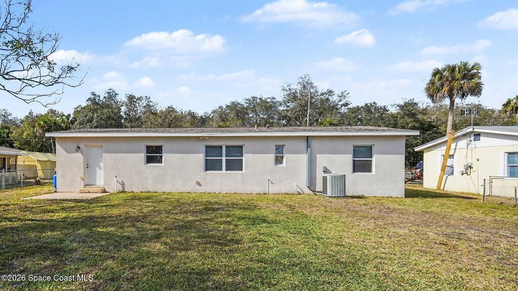 In the heart of W. Melbourne, this charming home offers convenience and tranquility. Minutes from I-95, commuting throughout Brevard or traveling to OIA is a breeze, shopping, dining, medical facilities, & everyday necessities are all close by. Tucked away on a quiet dead-end street with a wooded area across the road, provides peaceful living with no through traffic. The former carport has been enclosed, adding valuable square footage and versatile living space with its own entry and exit access. Inside, you'll also find an indoor laundry room with additional exterior access for added functionality. The large backyard is mostly fenced, offering plenty of room to relax, entertain, or garden. Major renovations completed in 2009 included all plumbing, electrical, insulation, double-pane windows, window treatments, HVAC and ductwork, kitchen cabinetry, appliances, bathroom updates, and tile throughout the main area. The roof was replaced in 2020, and ceiling fans in every room.