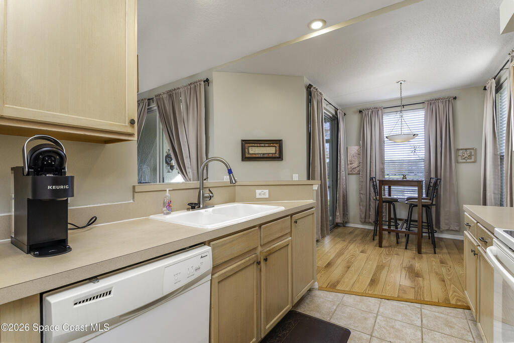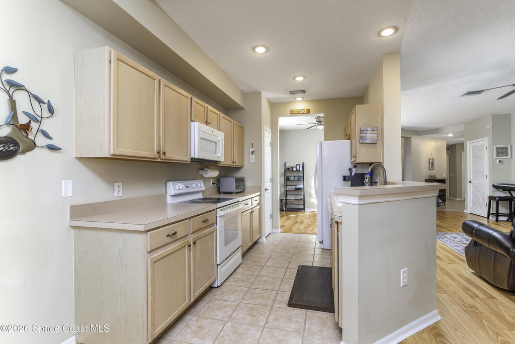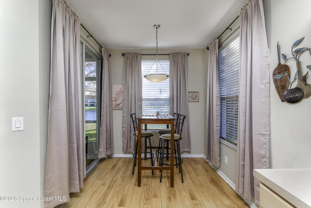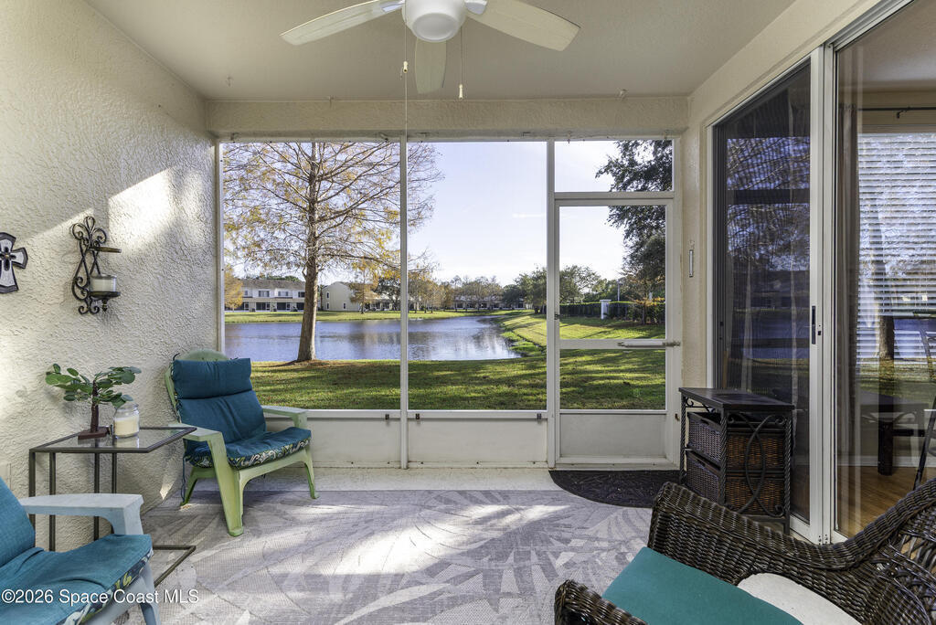 NO STAIRS -- just easy living! This FIRST FLOOR END-UNIT condo offers serene lake views and a split-bedroom layout for maximum privacy. Move-in ready and awaiting your personal touch, the flexible bonus room easily adapts as a home office, den, or guest space. Enjoy a functional layout where prep, dining and gathering connect seamlessly. Breakfast tastes better in the sunlit nook overlooking the lake. The spacious primary ensuite features a large walk-in closet, double vanity and tiled shower. Sip, unwind, and enjoy lake views from your breezy screened lanai. Additional features include a 2yr-old A/C, indoor laundry and a single-car garage. HOA covers exterior maintenance, roof, landscaping, building insurance and access to the sparkling community pool. Ideally located near Suntree Country Club, The Avenue Viera, Brevard Zoo, beaches, nature trails, I-95 and major employers of the Florida Space Coast Launch Ecosystem -- perfect for retirees and professionals alike.