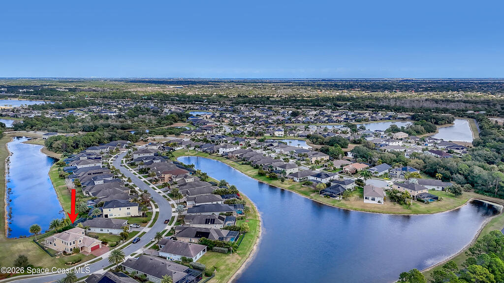 Experience upscale Viera living in this exceptional 4-bedroom, 3.5-bath home with a rare in-law suite. The open floor plan is designed for modern luxury and effortless entertaining. The gourmet kitchen features granite countertops, abundant cabinetry, and a spacious layout that flows seamlessly into the living areas. The main level includes the elegant primary suite plus a private in-law suite for guests or extended family. Upstairs, three bedrooms and a massive media room offer flexible space and comfort, with easy conversion to a fifth bedroom. Step outside to the deck and enjoy serene water views. Ideally located near Kennedy Space Center, Viera Hospital, shopping, dining, and entertainment, this home offers a premier address and refined lifestyle for your family. Homeowner can obtain a private membership to Addison Village Club with access to pool, courts, gym etc.