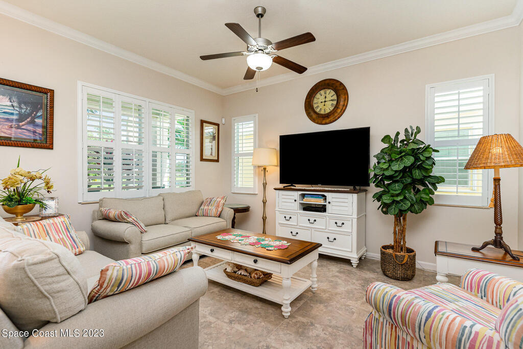 SPECTACULAR ''ALAMANDA KEY'' LAKEFRONT! Exquisitely upgraded ''key west'' style 3 BR + EXTRA FLEX ROOM (could be used as 4th bedroom) Located just a few steps from the community pool, tennis court & clubhouse! Fantastic curb appeal, spacious rooms, extensive tile work + priceless impact glass windows & doors throughout! Light, bright open & inviting this home is a real ''one of a kind'' because of countless phenomenal upgraded features...granite counters, custom cabinets, New SS appliances, crown molding, plantation shutters, gutters, epoxy garage floor & exterior painted ALL in 2023! Huge master suite, formal dining room (could be office or 4th bedroom) interior laundry, breakfast nook & enormous gourmet kitchen w/gigantic center island overlooking the Great room for entertainment at its finest. Back screened porch, 2 car garage w/private South side entry...resort style 55+ Florida living & ''key west'' theme in a convenient location means ALAMANDA is the KEY to the good life!