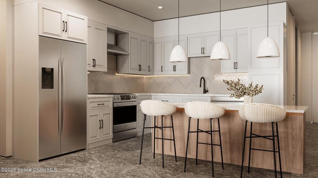 Welcome to the Trident Residence. The most iconic Mixed-Used condominium development in Satellite Beach. Similar to the A-1 This residence offers over 200 SF more of space. Clean lines, oversized windows, and a sleek open layout create a modern edge that sets this home apart from anything else on the Space Coast. The primary suite is a private elevated unit with striking shower, while the second bedroom flexes effortlessly as a guest space or upscale workspace. Every detail: lighting, textures, flow was crafted to feel intentional, refined, and unapologetically modern. This is coastal living with attitude, designed for those who expect more and settle for nothing ordinary.