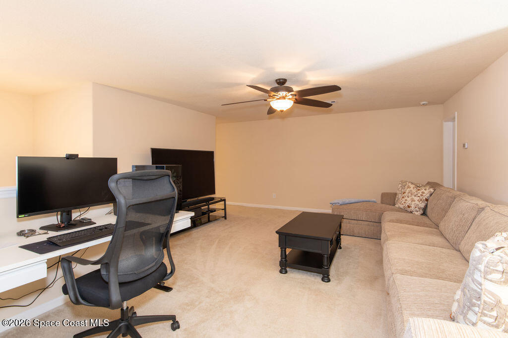 Light-filled coastal townhome in the gated Montecito community of Satellite Beach, located just minutes from the Atlantic Ocean. This move-in-ready residence offers over 2,100 square feet of open living space with a functional layout ideal for everyday living and entertaining. Interior features include granite countertops, tile flooring throughout the main living areas, a spacious primary suite with en-suite bath, well-sized secondary bedrooms, a versatile upstairs loft, and a covered patio for outdoor living. Montecito offers resort-style amenities including a community pool, fitness center, clubhouse, and professionally maintained common areas. Lawn care is included. Conveniently located near beaches, shopping, dining, and top-rated schools. Ideal for full-time residence or lock-and-leave coastal living.