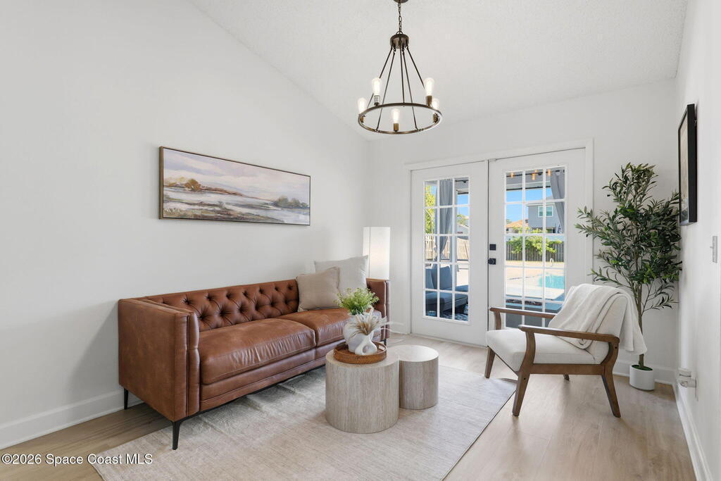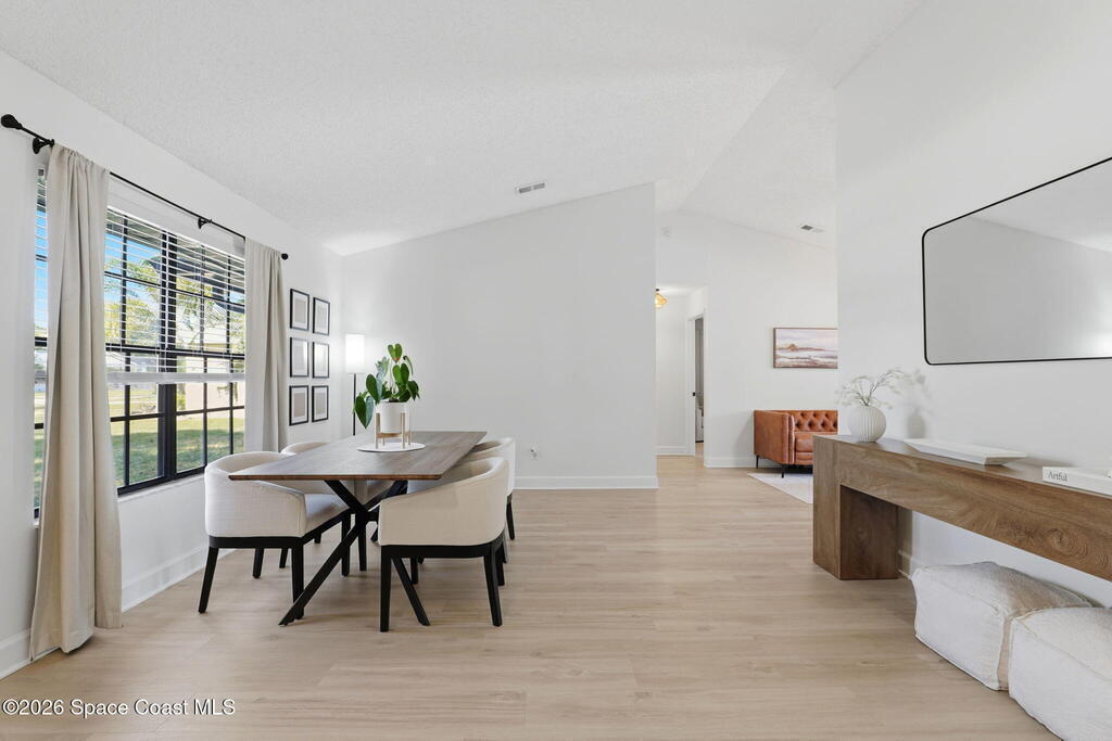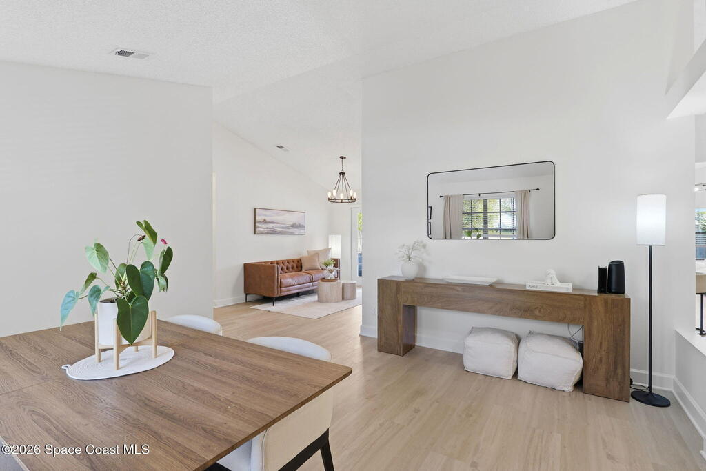 Located in the Wickham Forest neighborhood, this beautifully remodeled 3-bedroom, 2-bath, 2-car garage home sits on an exceptionally rare .34acre oversized lot, offering expansive front and backyard space with full fencing for privacy. The outdoor living area features a large freshwater swimming pool, newly paved pool deck, and a spacious covered lanai--perfect for entertaining or relaxing. Inside, the home showcases brand-new luxury vinyl plank flooring throughout with no carpet, vaulted ceilings, and skylights that fill the space with natural light. The updated kitchen offers granite countertops, white shaker cabinetry with soft-close hardware, gas range, pantry, and breakfast nook, all overlooking the backyard and pool. The primary suite features vaulted ceilings and an ensuite bath with walk-in shower, separate tub, and granite vanities. Additional upgrades include a freshly painted interior and exterior, brand-new paved driveway, upgraded lighting and fixtures. 2yr old roof. Home