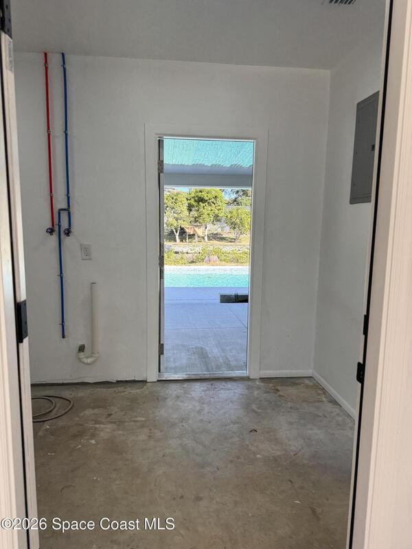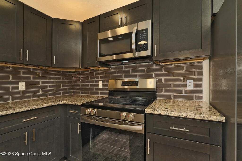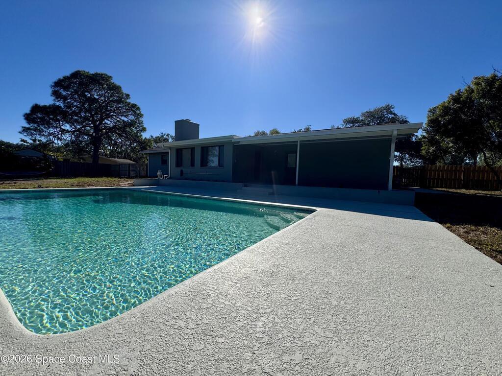 Meticulously updated home in South Merritt Island. This stunning pool home has been thoughtfully renovated to offer a blend of modern luxury and exceptional recreational opportunities. Step inside to a beautifully appointed interior, where every detail has been considered. The home boasts a suite of brand-new appliances, plank tile flooring extending seamlessly throughout while providing a low-maintenance aesthetic. Both the kitchen and the bathrooms feature granite countertops complemented by wood cabinetry, elevating the home's contemporary design. A spacious two-car garage offers convenient parking and additional storage.Beyond the interiors, this property truly shines as an outdoor enthusiast's dream. Spanning a generous 0.64 acres, the fully fenced yard provides an extraordinary amount of space for all your outdoor pursuits. Imagine hosting vibrant gatherings on the large, open deck, or unwinding by the recently resurfaced, sparkling pool, which forms the centerpiece of your