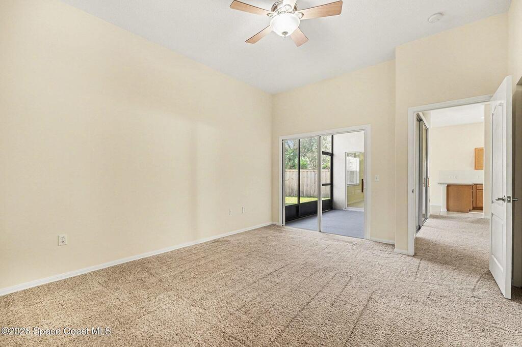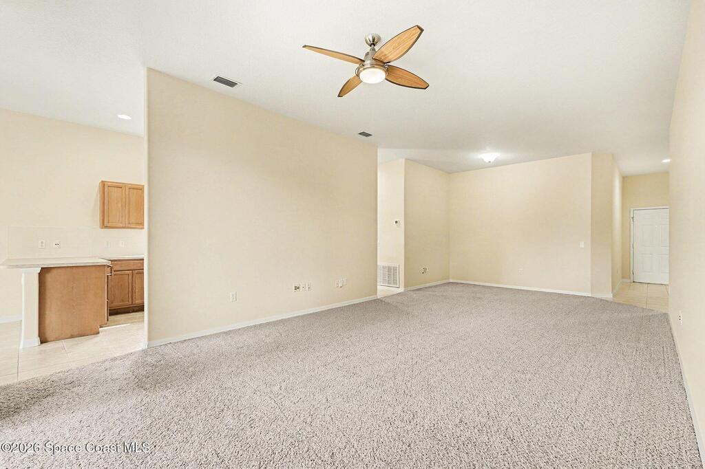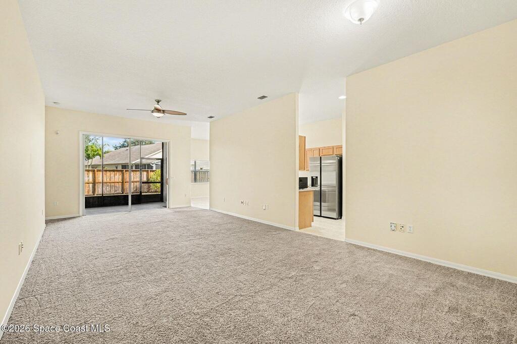 Welcome to Deer Lakes, a quiet and desirable community ideally located just off Wickham Road, only one light from The Pineda Causeway for easy access to beaches, major employers, and shopping. This well-maintained Key West floor plan home sits on a premium corner lot, chosen by the original owners for its close proximity to the community pool, playground, and convenient neighborhood access. Inside, you'll find a thoughtfully designed layout featuring a primary suite with a walk-in closet, soaking tub, separate shower in the primary bath. The interior has been freshly painted, and new plush carpeting with upgraded padding has been installed throughout the bedrooms, living room, and dining room. The home's positioning on the lot provides a private, fenced backyard. Additional updates include stainless appliances, new window treatments, with panel blinds ordered and on the way. Roof was installed in 2020, A/C in 2023. water heater in 2016. There is plenty of