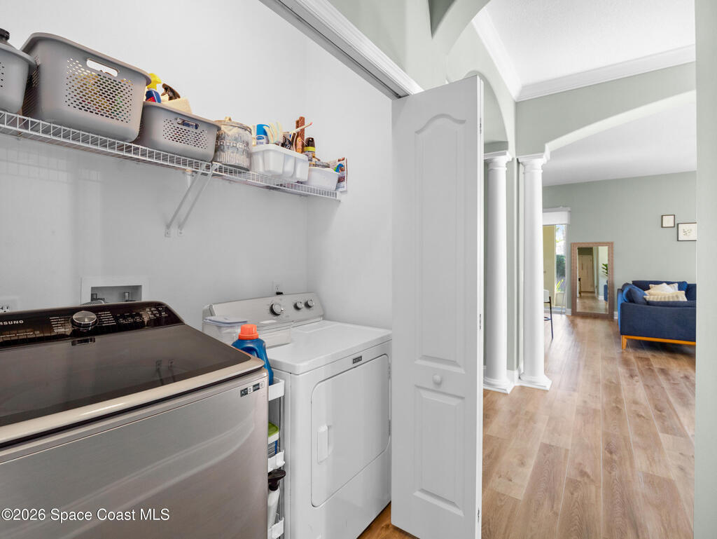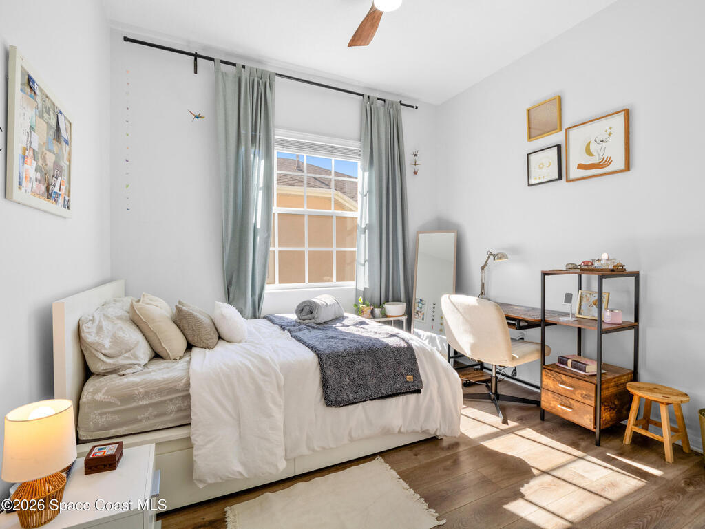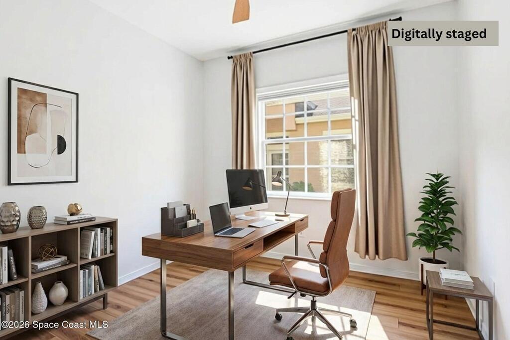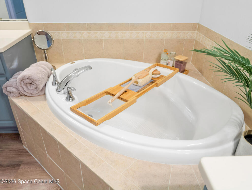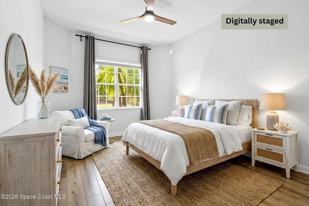 Tucked at the end of a quiet cul-de-sac, this end-unit offers rare privacy. Thoughtfully updated, the home features luxury vinyl flooring w/ tall baseboards throughout, white kitchen w/quartz countertops, SS appliances, all flowing into an open living and dining area designed for comfortable everyday living. The primary suite is a true retreat, complete with a large en-suite bath featuring an oversized garden tub, walk-in shower & private water closet. Enjoy peaceful mornings & evenings on the screened-in porch, perfect for unwinding. Located within the gated Capron Ridge community, residents enjoy a beautiful clubhouse, heated pool, walking trails, parks, tennis shuffleboard courts. Lawn care, exterior maintenance & roof coverage provide low-maintenance living, all within top-rated Viera schools & minutes from shopping, dining, medical facilities, & major employers. A great opportunity to enjoy privacy, convenience & community living in one of Viera's most established neighborhoods.