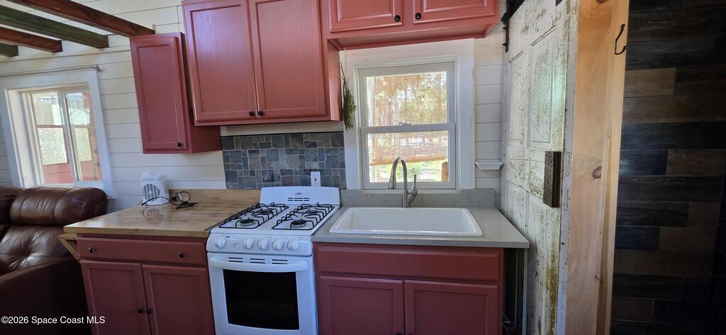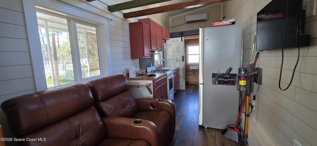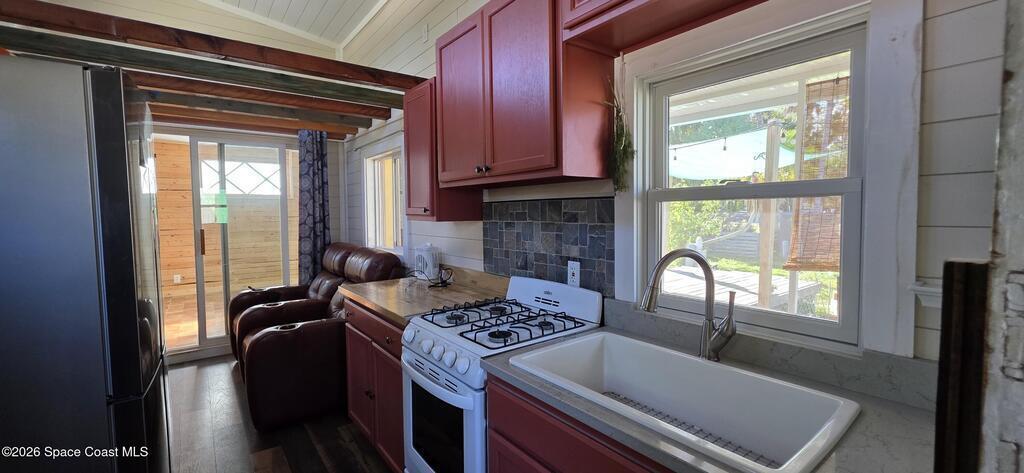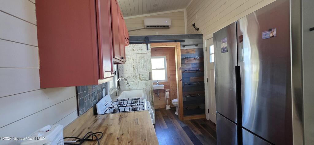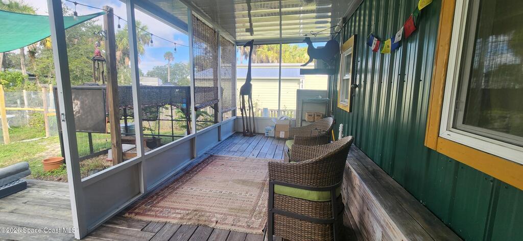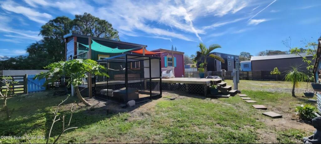Ready for less house and more life? HERE IS YOUR SIGN! Tiny home on wheels plus built on addition 12X15 primary bedroom with washer and dryer hookups. Home has 2 lofts providing ample storage. The overwhelming character is undeniable! Butcherblock counters and new porcelain sink. Custom sized propane gas stove and large fridge. Set up perfectly for farm to table meals. Full bathroom with open shelves and zero entry shower behind a 100 yr old bard sliding door. Fenced backyard wrapped with a large custom deck and screened porch. Great for aspiring homesteaders with garden and chickens allowed. Butterfly attracting plants and mature palms create a backyard oasis. This tiny home is the perfect balance between simplicity and expression. If you have a creative sprit this is the home for you.