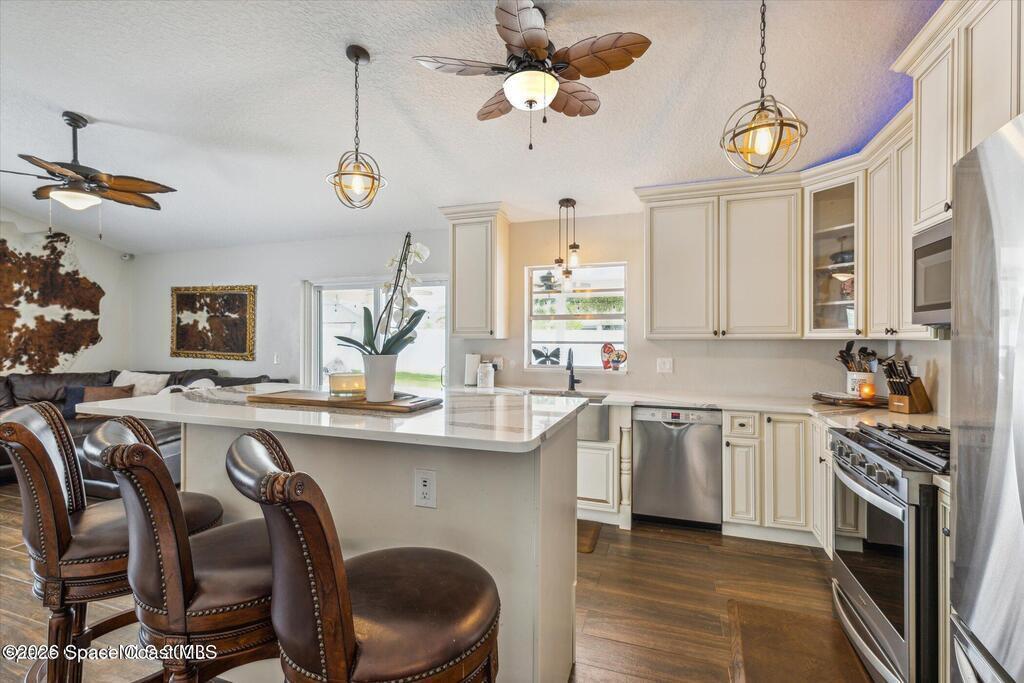 Ceiling Fan(s) , Eat-in Kitchen , Kitchen Island , Open Floorplan , Pantry , Skylight(s) , Split Bedrooms , Vaulted Ceiling(s) , Walk-In Closet(s)